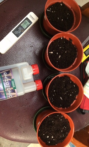 Seeds spent 16 hrs in water, moistened soil with 100ppm 6.3ph rain water with canna rhizoctonic, seeds put in 1/4" deep, wait n see what happens this time! 1st time using good soil.