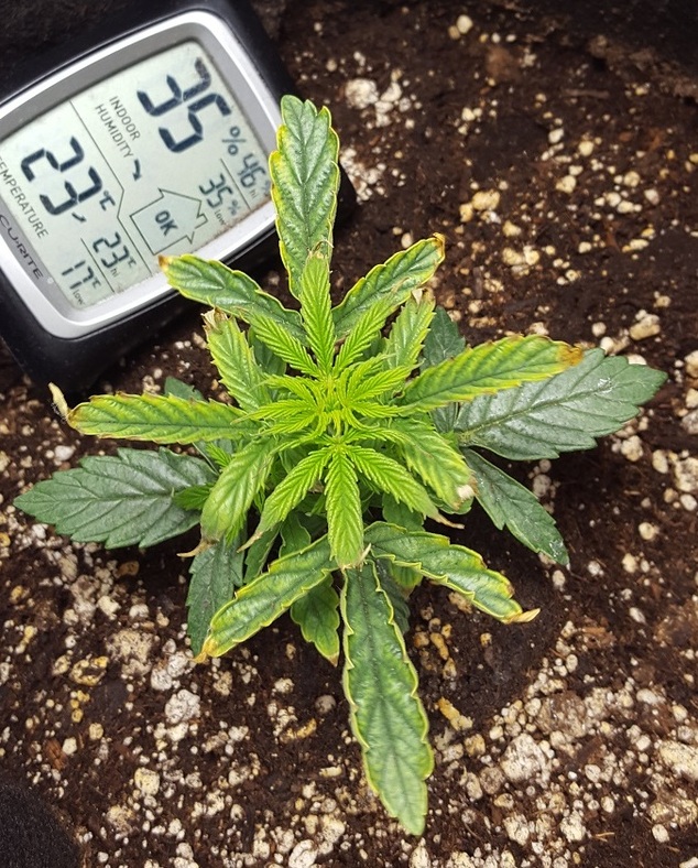 Thanks for the comments. I have stopped with the nutes. I gave it 1 L of just water yesterday. @Majiktoker What’s the best way to raise humidity? My girl is in a 5 gallon bucket. No room for humidifier. When should I start with the nutes again? I just purchased Flora Nova Grow 7-4-10 and Flora Nova Bloom 4-8-7.