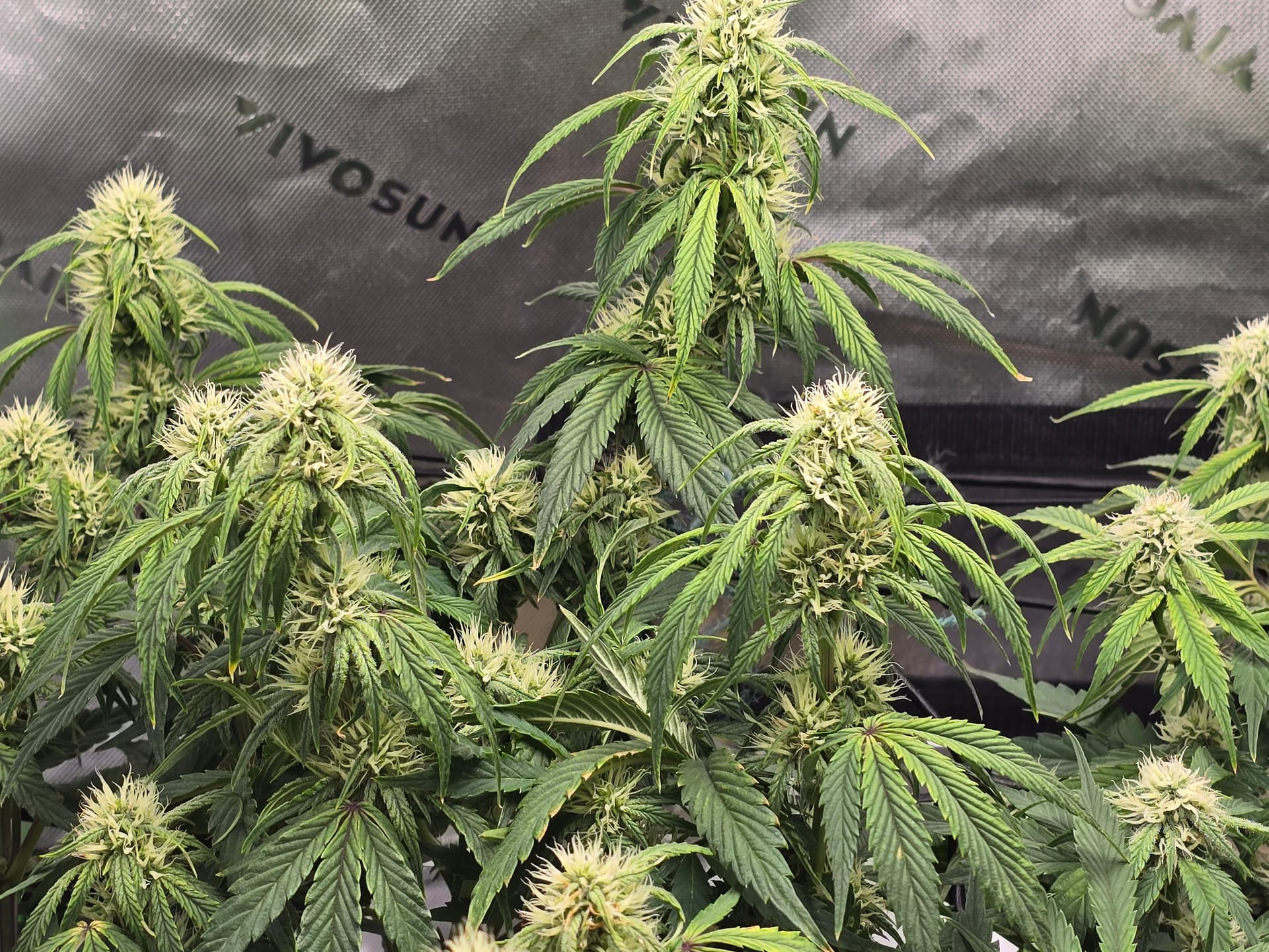 @Growdoc Hey! I was hoping you could provide some input on these girls? 45 days now. They are filling out nicely and very sticky. What are your thoughts on defoliation at this point in the grow ? Feel like some of the smaller snacks are not getting much light. Also, I know I probably have at least 30 more days if not more, at what point will I be able to know they are getting close to chop day?