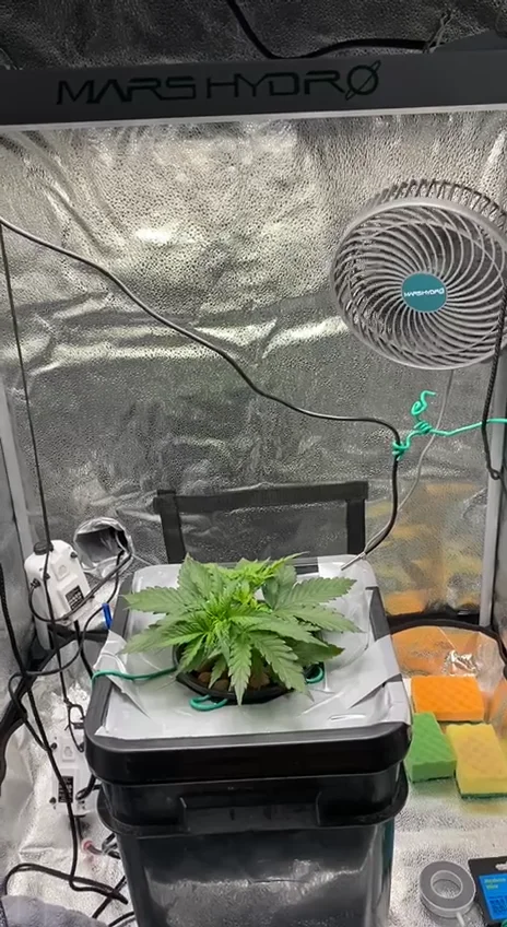 Actually, I accidentally snapped the main stem while doing some LST, I might have overdone it lol. It tore halfway through the stem’s skin, but I managed to make some repairs. This DWC lid isn’t very convenient for LST; next time, I should consider using something better to secure the wires.