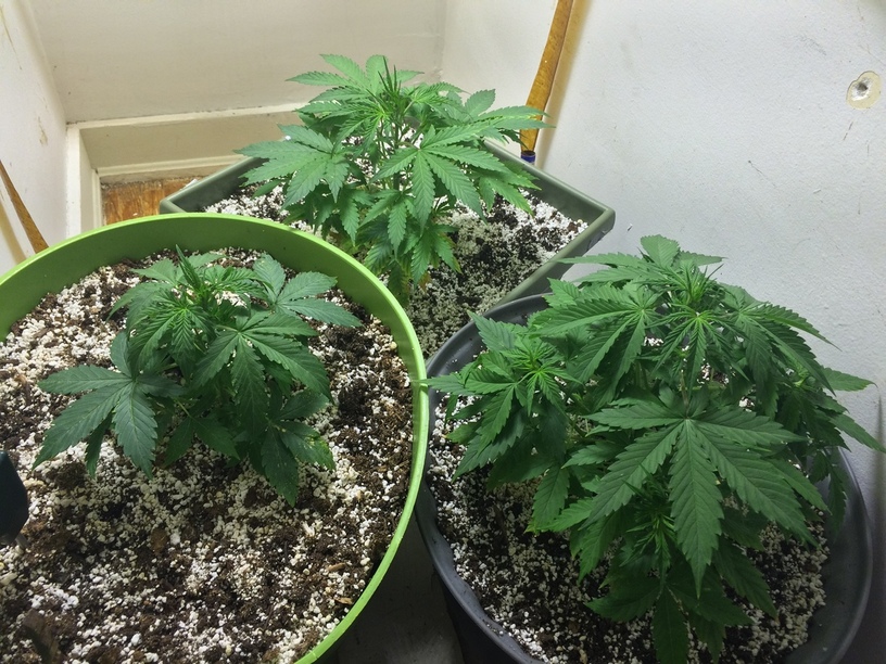 switched the spot of the youngest plant originally on the left and switched it with the plant in the back…turns out the youngest plant along with the other one that was not doing so well really turned around and now the youngest one is the biggest even though it’s two weeks younger…it’s pot is 4 inches taller but the plant is at least a foot and a half taller than the rest…i’m wondering if it’s because it’s in a 5 gallon pot unlike the other ones which are in 3 gallon pots