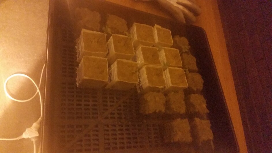 2 Skunk Kush seed popped next putting them in Rockwool day five with 6 Black Domina out of the Rockwool… Followed by another one on day 7 today… Looking like one of the Hash Plant is starting to come out of the Rockwool which is pretty good to see!
