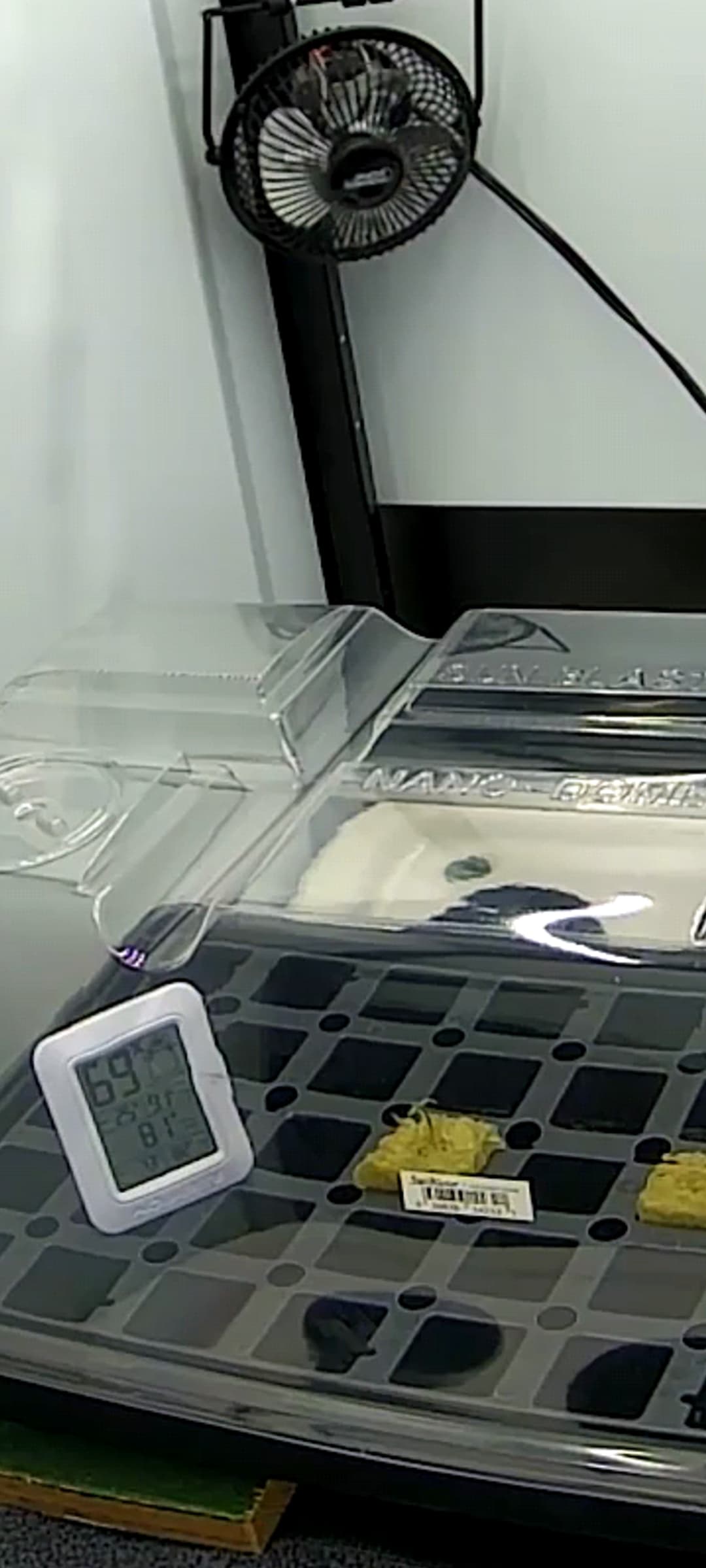 First seedling to pop up in the Super Closet. Less than 72hrs from the pack to the rockwool. Impressed!! Nothing on number 2 yet, Iâm guessing tomorrow.