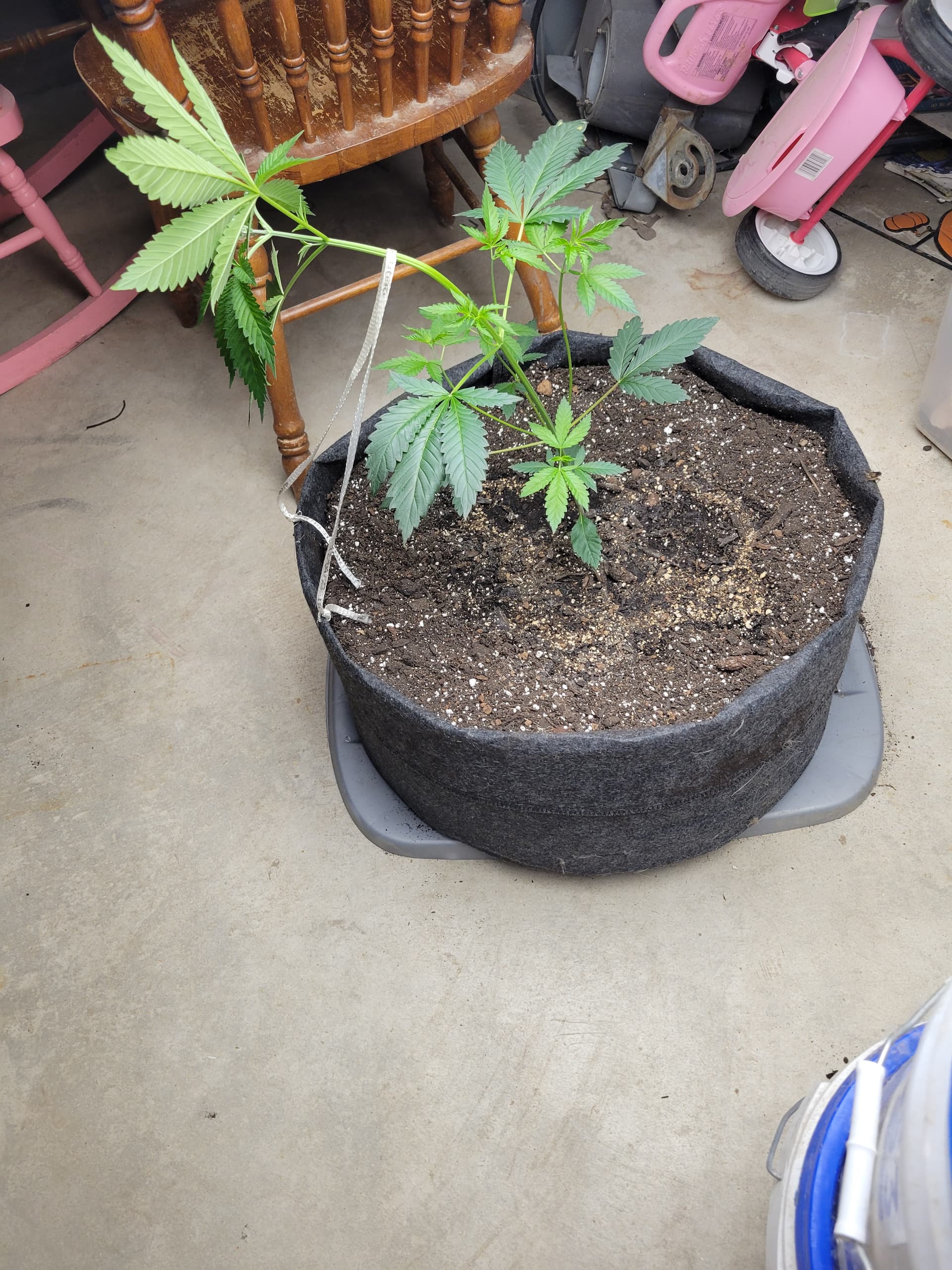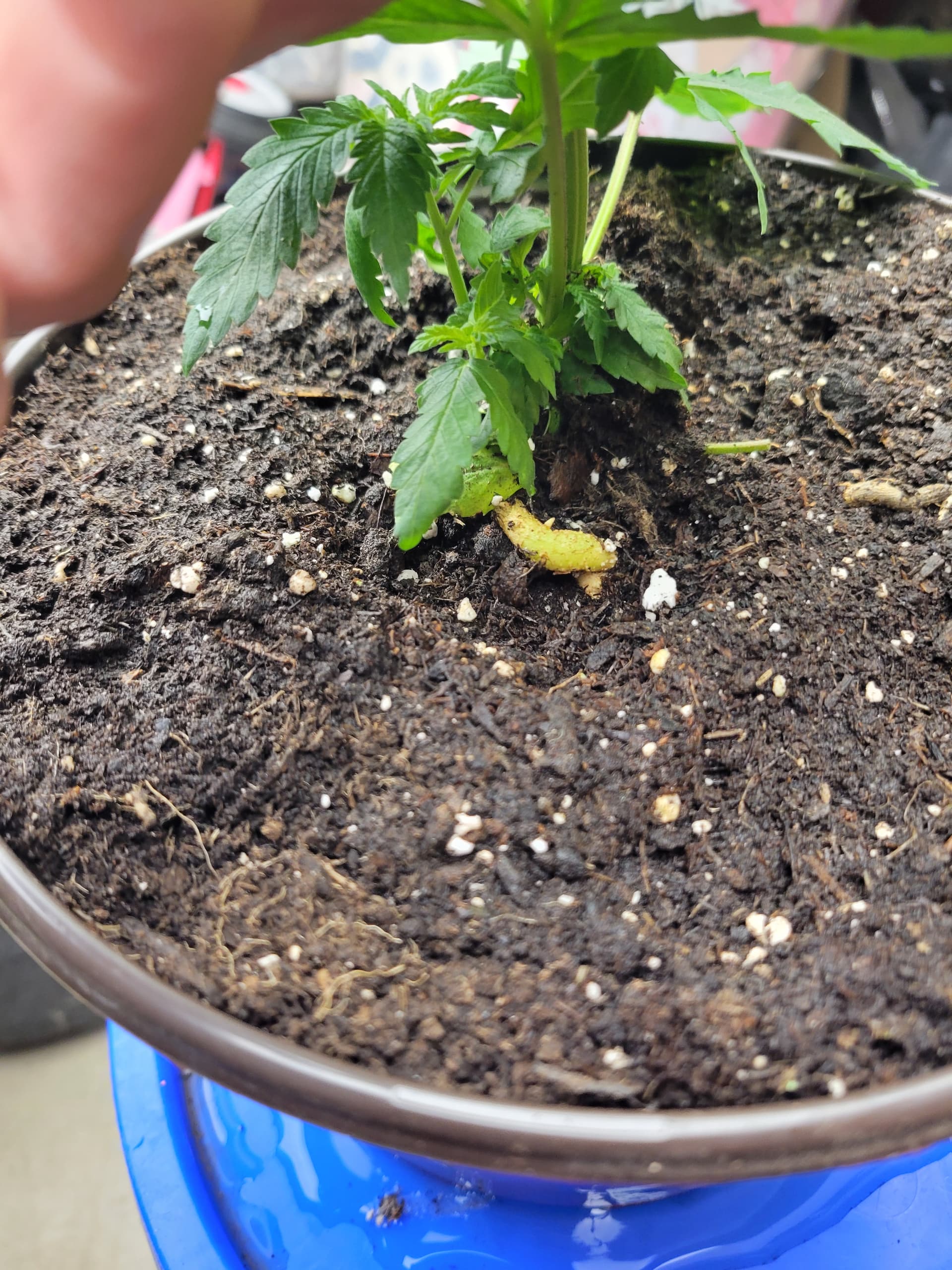 I didnt have enough soil for the little one yet. Lol but thats better than a solo cup. That little girl going to be a bush the root is even gnarley