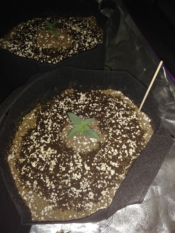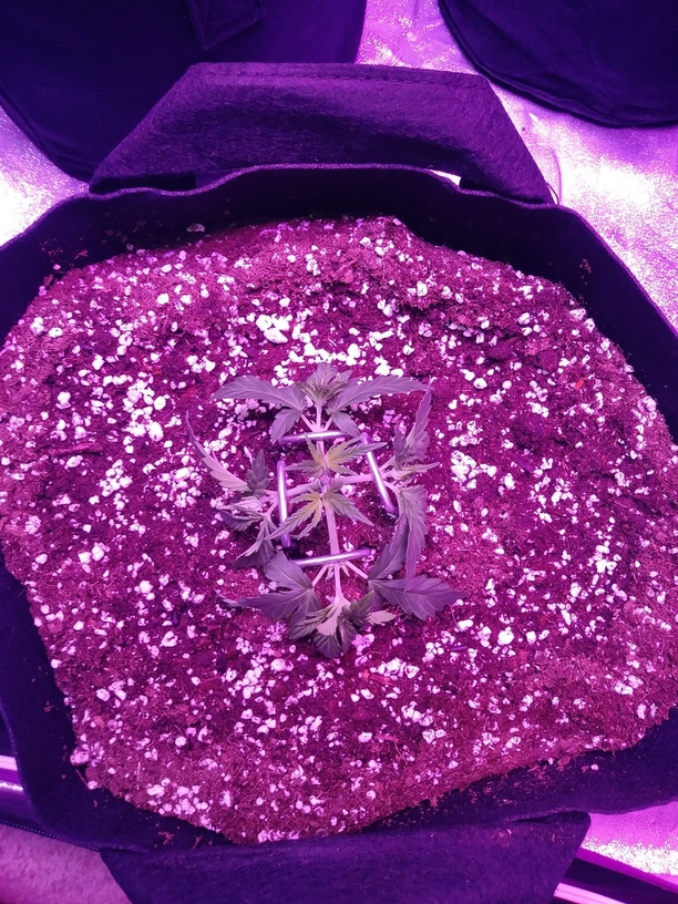 Welcome all and hang on for this wild ride I’m avout to embark on. This will be my first attempt at a scrog. It will have 2 of each and all 4 are up and looking lovely. They are in 5 gallon cloth pots in promix and under a 600w meizhi led and a viparspectra 450w led. I have the net already up and in the tent, because I didn’t want to have to fool with it once the grow gets hot and heavy. They usually recieve about 20 oz of water every couple of days or so. Once they get another set of leaves I’ll begin to water them good and heavy like.
