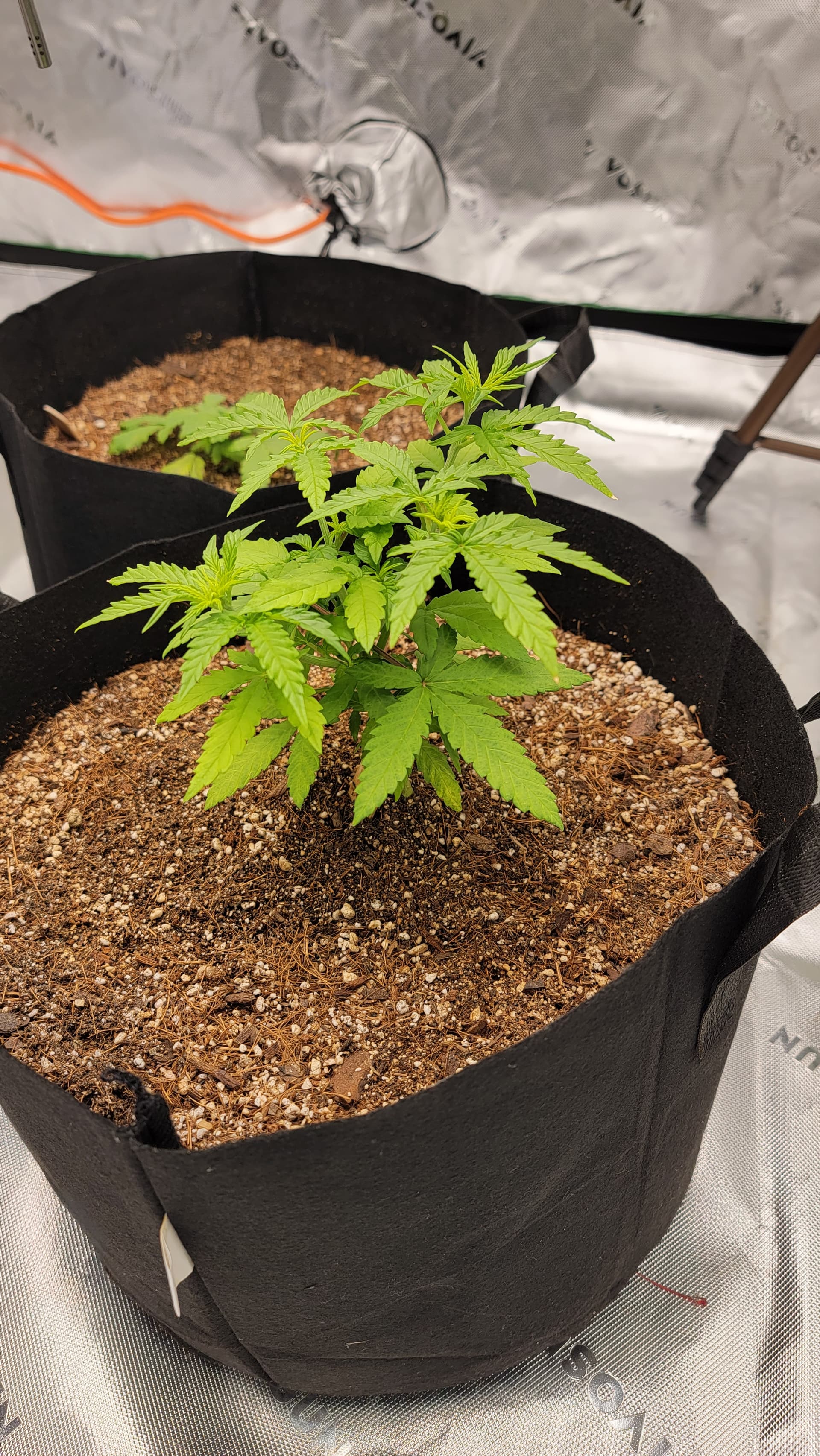 Checked the medium and still moist since last watering/fed…on Thursday, 5gl pots they are on their bruce 19 days(good looking) gelato 23 days(droopy green yellowish)