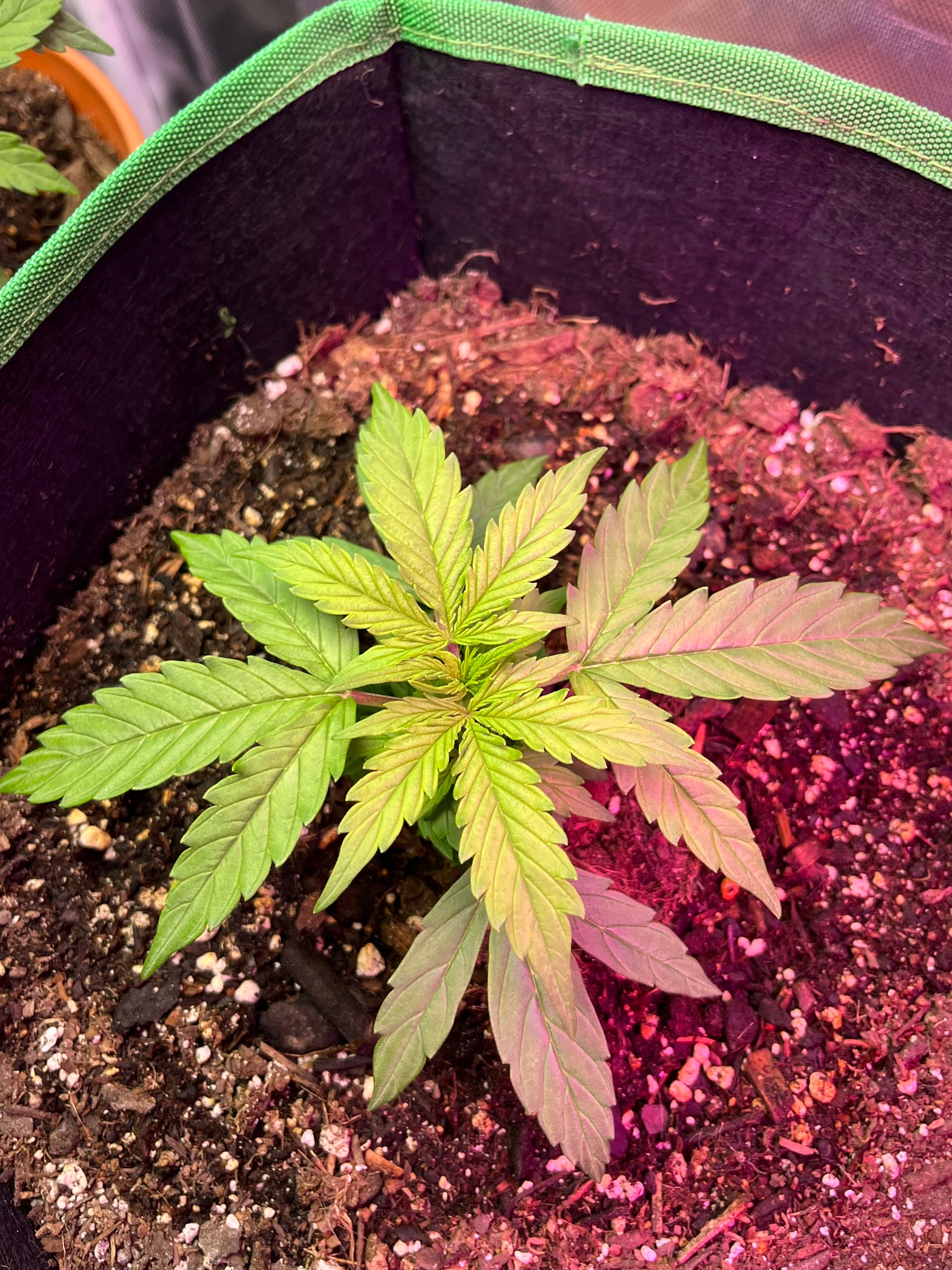 That soil was naked. Organic Potting soil by espoma. I added fox farm cultivation nation. Veggie. To both plants. They have responded very well. Just this one seems to be very low. And the new viper spectra light just added it Wednesday. I was working with a cheap one at first.