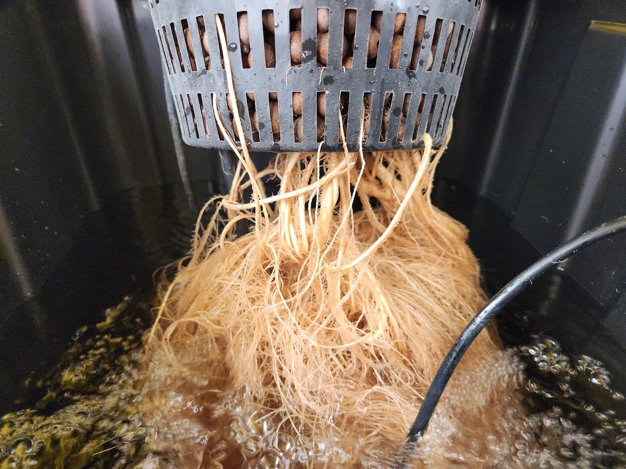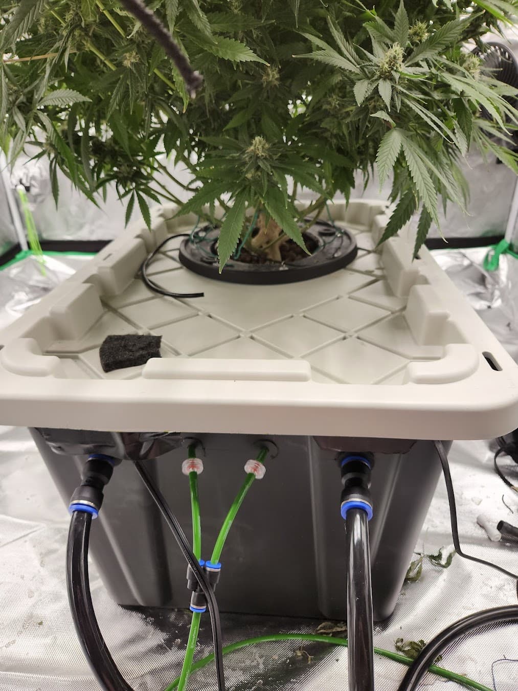 Love that I can actually access the res and see the roots when I want. Buds are plumping up nicely too. Her air stone from the bucket is stuck in the roots so just left it in there disconnected. They aren’t the best roots some come off with light pulling but smelt fine. They had been just circling the bucket so now they should be able to loosen up and spread out.