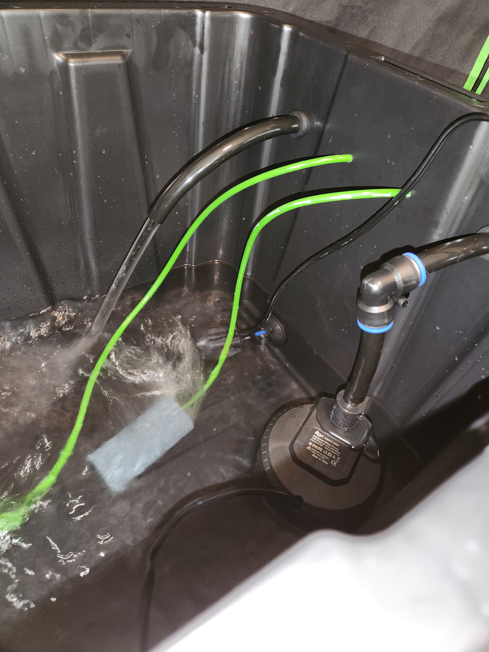 Finished the swap and to make sure I was doing everything right the first time I mixed up 10gals using two jugs. ppm was 850 and pH 5.6 so upped each to 5.8. Once in the tub the ppm was 900-910 but I think that is from the stuff I couldn’t clear from the chiller and lines. She’s been getting almost 1200 ppms so this should if all ppms are the same lower than she has been getting.