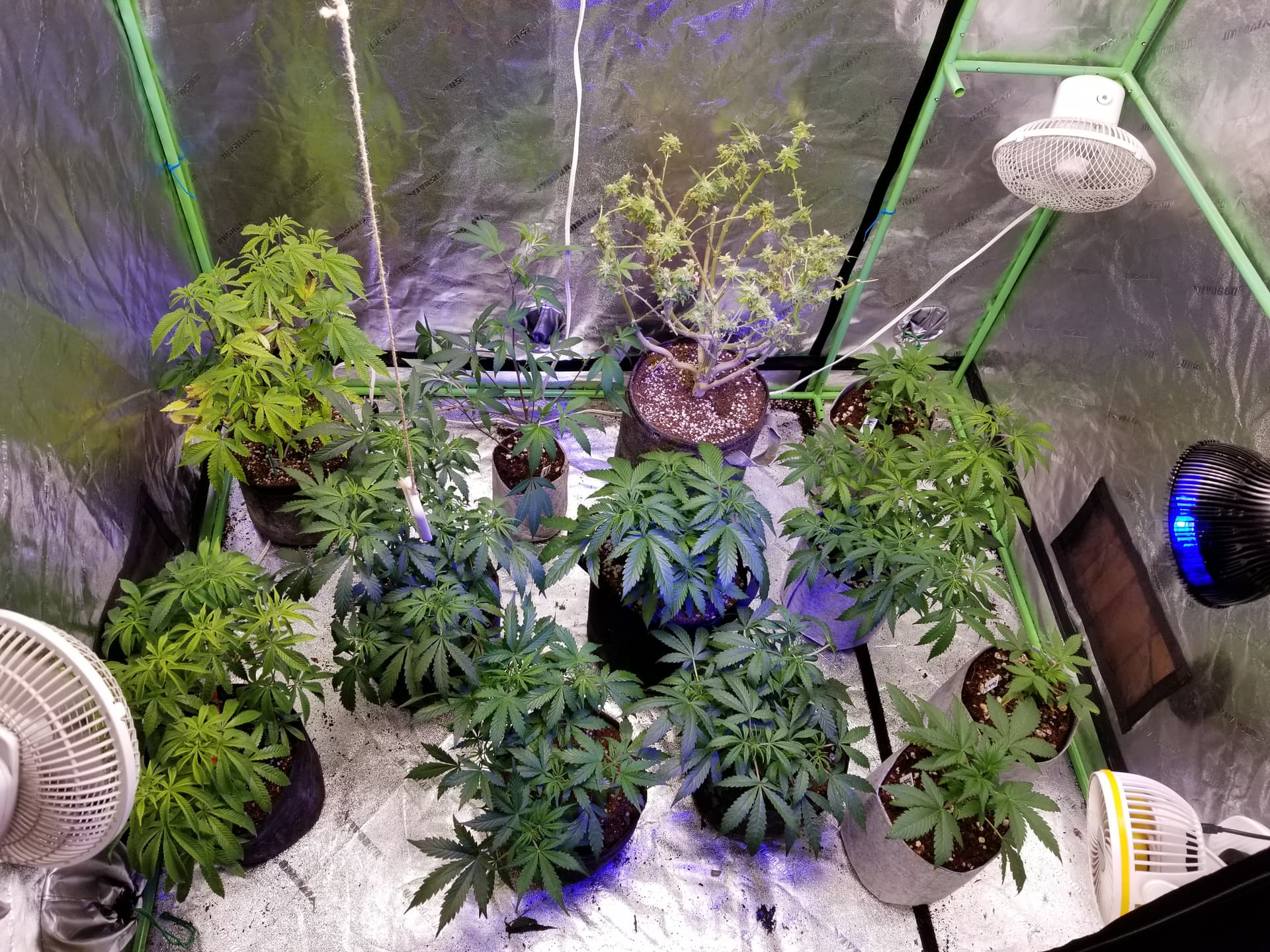 Some more progress, moving plants around into flower tent. Trying to figure out how to shove 19 plants in 1 gal bags into my 4x4 ![]()