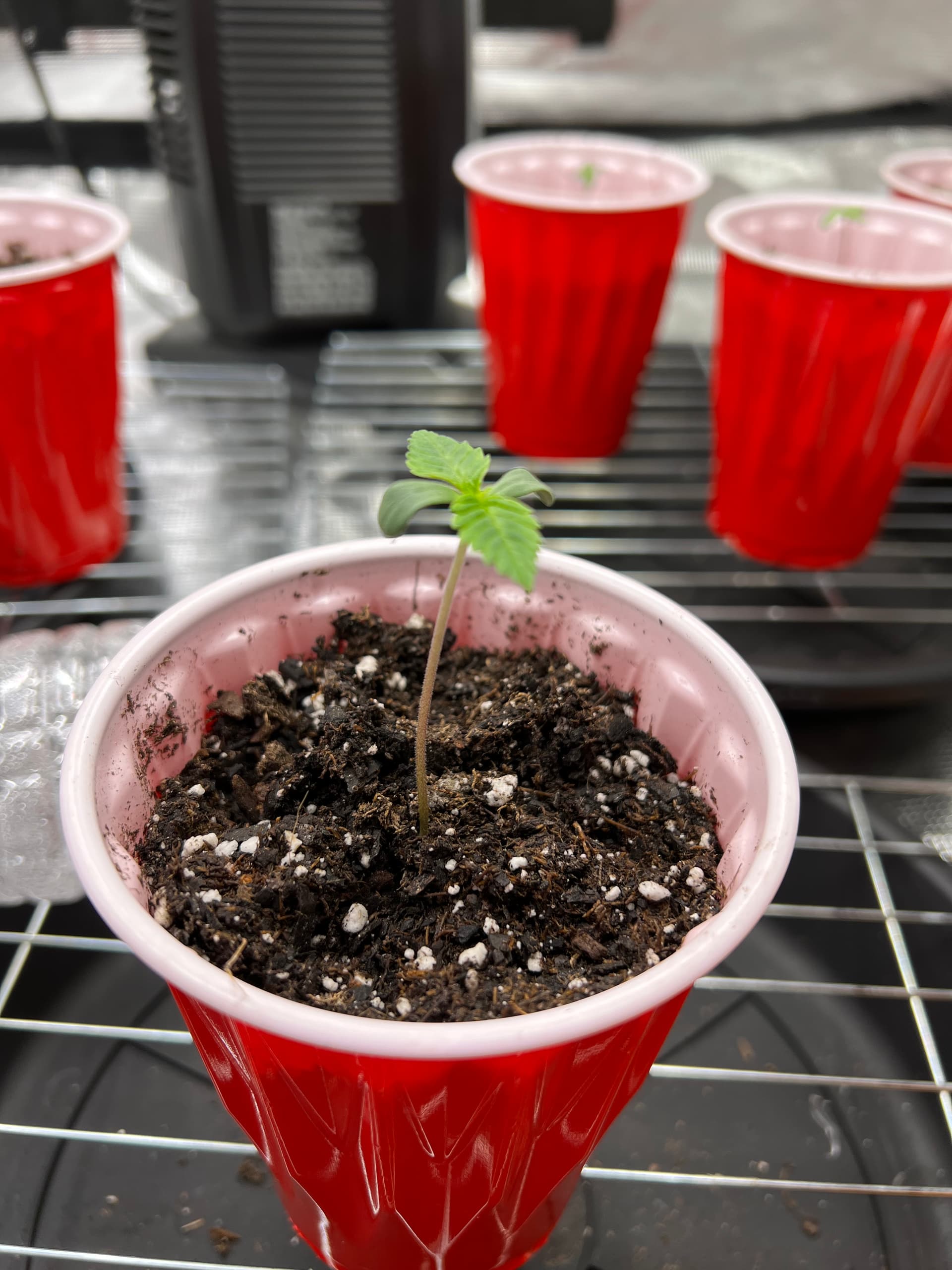 After 36 hours in water, the seeds had tails and I planted them in the soli cups and put them in the tent. I don’t have the fan on and the light is at 25% about 30” above the plants. Is this correct? The seeds are in Fox Farm Happy Frog. I domed them and left 3 open to experiment.