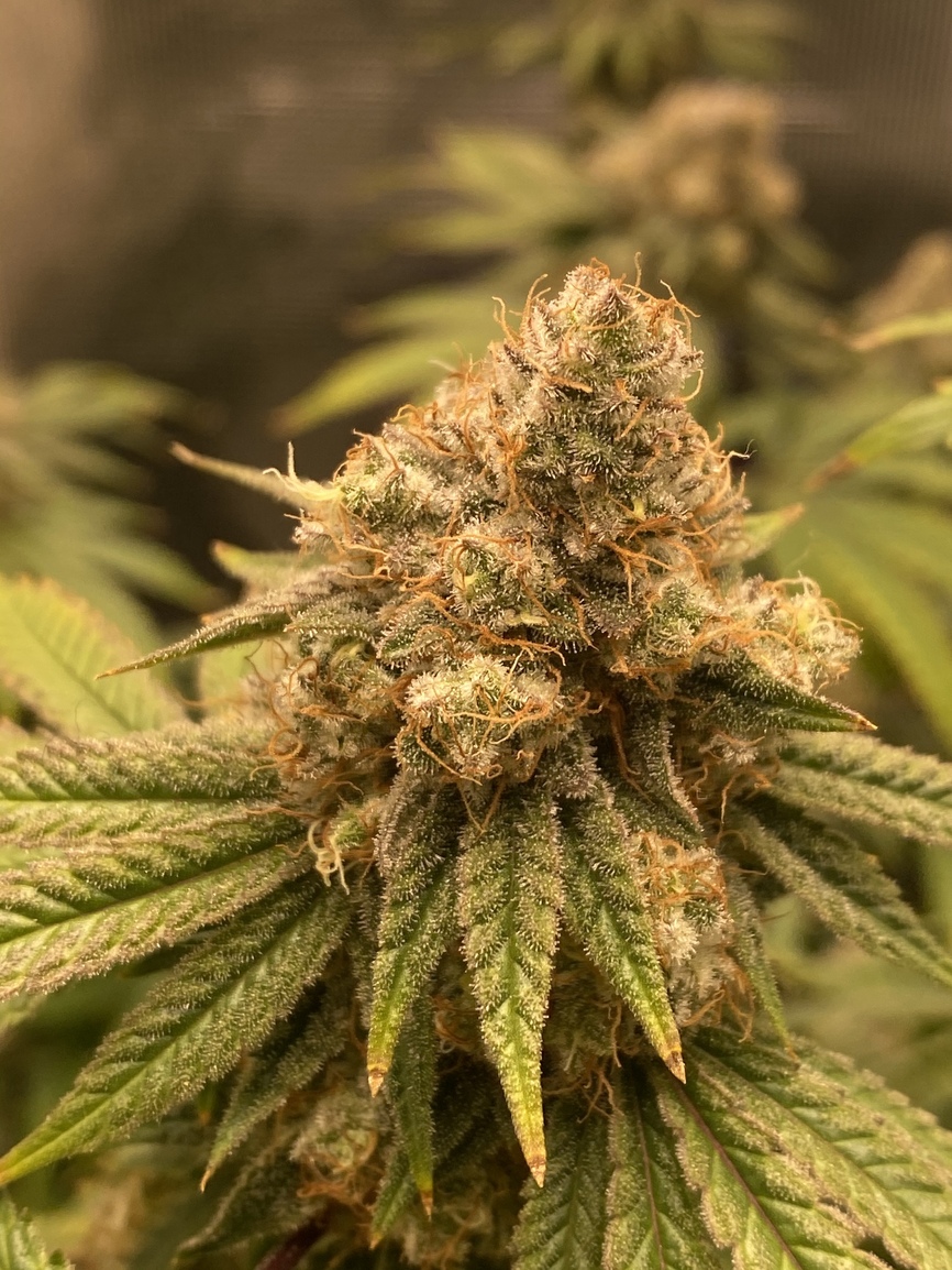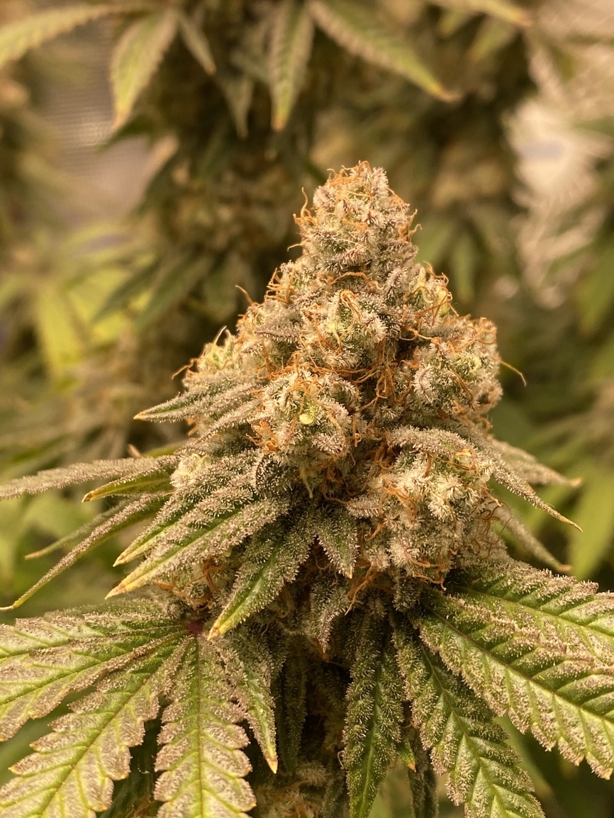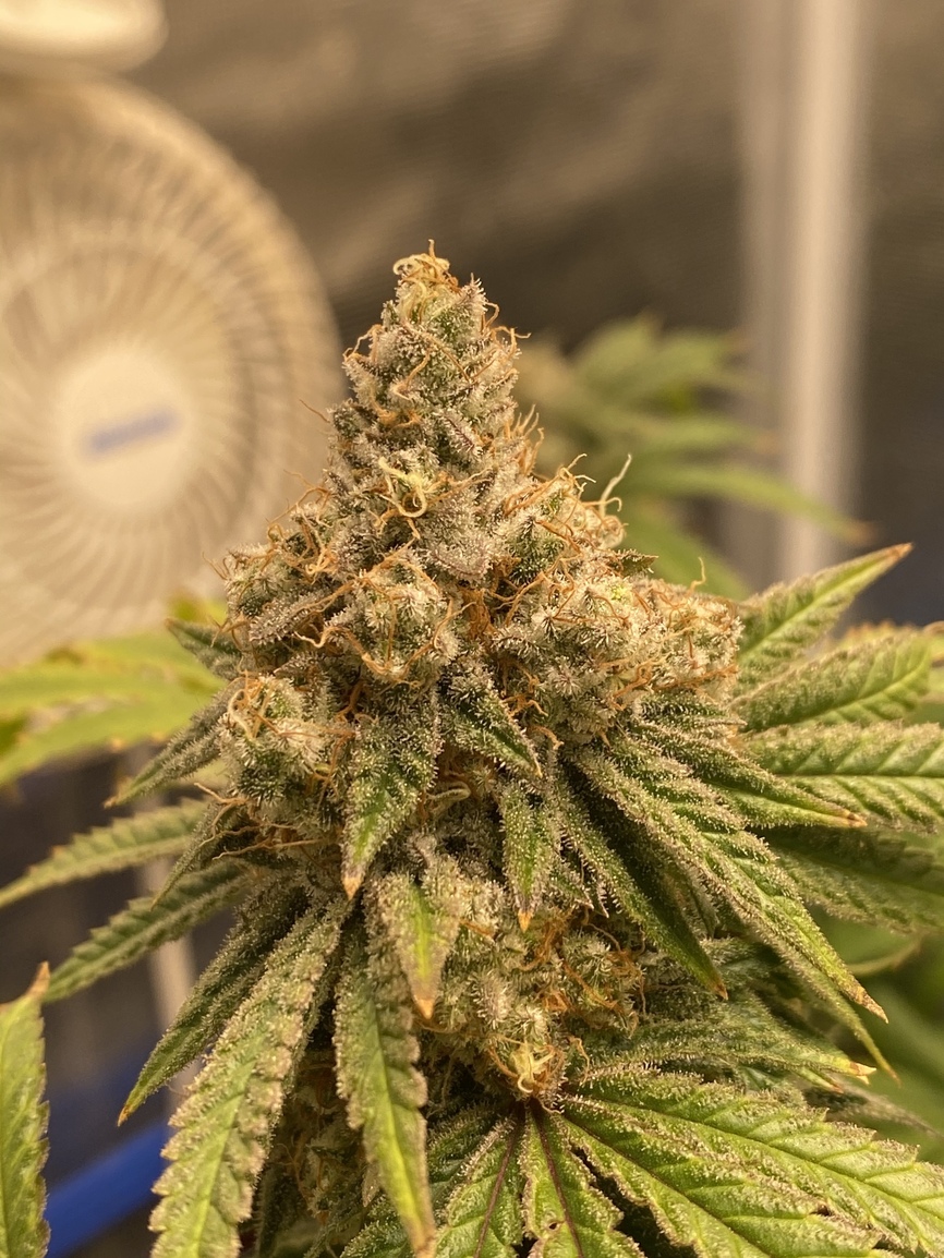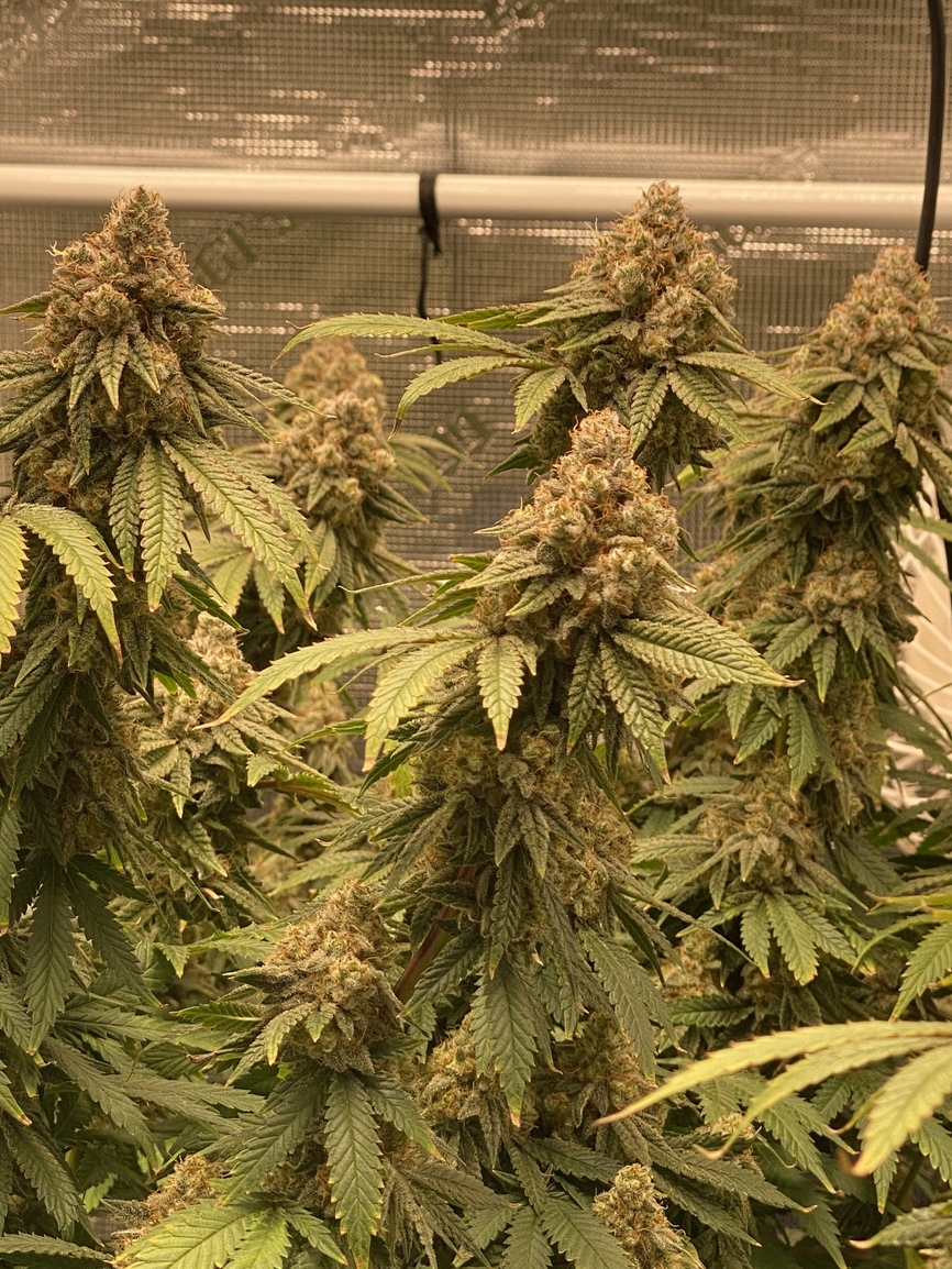Jungleboys seeds. The Plant that was in week 5 of flowering that I took the clone from as it was the winning pheno lol. She smelled the best. took forever to root and even longer to revert. She has some root system though and she is big. Biggest leafs I’ve ever seen on a plant under 8feet tall. One on the right is a feminized willies kush cake from seed junky genetics I’ve topped them both and then topped again. The seed junky plant I’ve don some lst and some supercropping and some topping she’s kind of a mess but I’ll see.