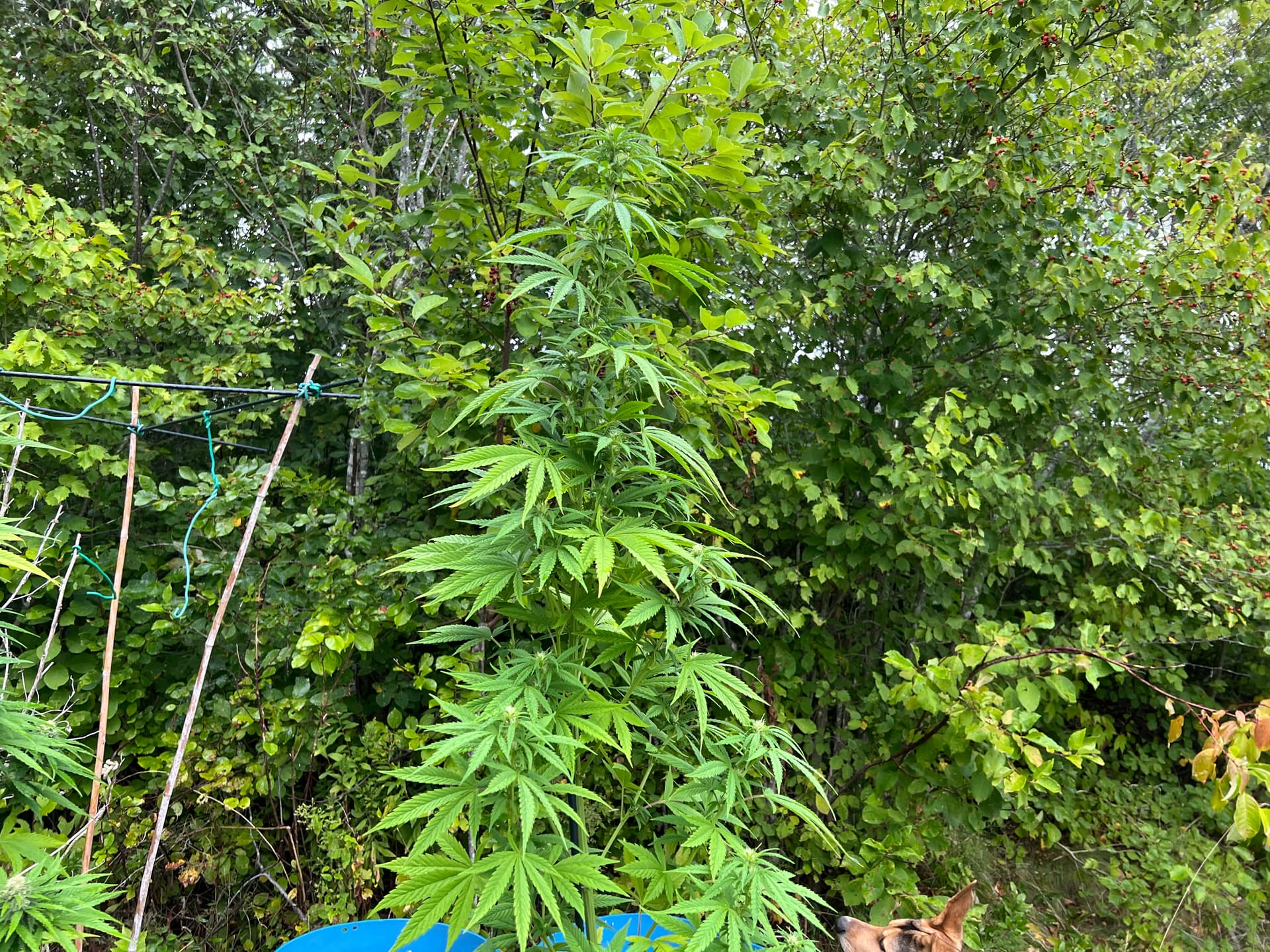 I have to stand on a milk crate, stretch as high up as I can to get the cola photo of Al. Beast of a plant with heavy sativa leaning growth pattern. Starting to become aromatic, prompting me to start exploring fencing options for a JIC scenario. All the bud sites are building up now and not a sign of issues with either pests or disease. I did a preventative spray of milk and water for powdery mildew as my peonies have it and I am about to remove them.