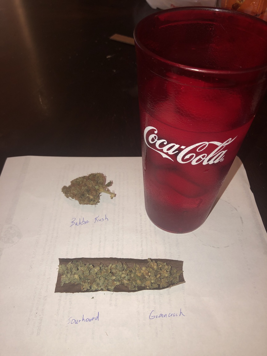 Black Widow in the bubbler and on the grinder. Strawberry Cough on left wing, Blue Dream on the right wing. Banana Smash Swisher.