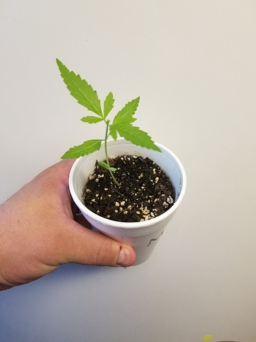 Be careful with the height of the lamp, you want more stretch than that thing had because that one came out “squint” and there wasn’t enough space under the lower leaves to pile up more dirt to support the stem and broke her putting tension on while I staked her. With the next one, I kept the lamp a little further away and ended up with the same sort of growth, just an inch or two taller from the start, stayed pretty much on a 2:1 height:width growth until she moved into flower.