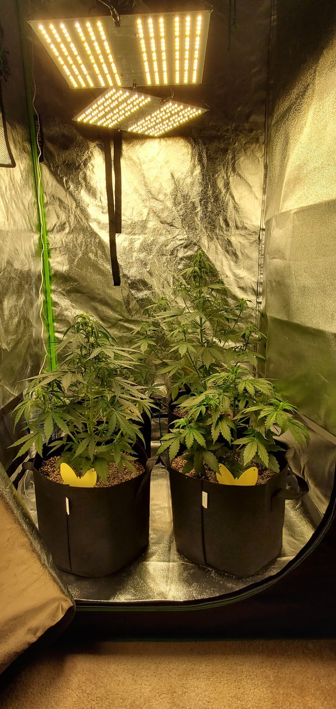 I would say they went into flower around 2 weeks ago. The one on the front right is a bit of a runt and the pistils are just starting to show. The one in the back sprang up incredibly quickly. Im just trying whatever i can to get a decent yield from this because i might not be able to do it again for a while lol.