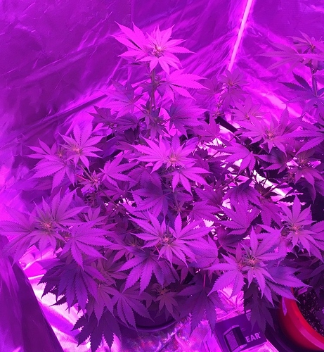So here’s a little update on my first grow… or a big one! I have my 2 4x4 tents set up. 1 8in exhaust split to 2 6in to a carbon filter. Veg tent has 1 blueberry auto, 2 purple haze and a gold leaf( all but the auto have been topped twice) the flower tent is just some bag seed I was playing with first. All of them r in 7 gallon cloth pots and 1 is in a random pot I had.