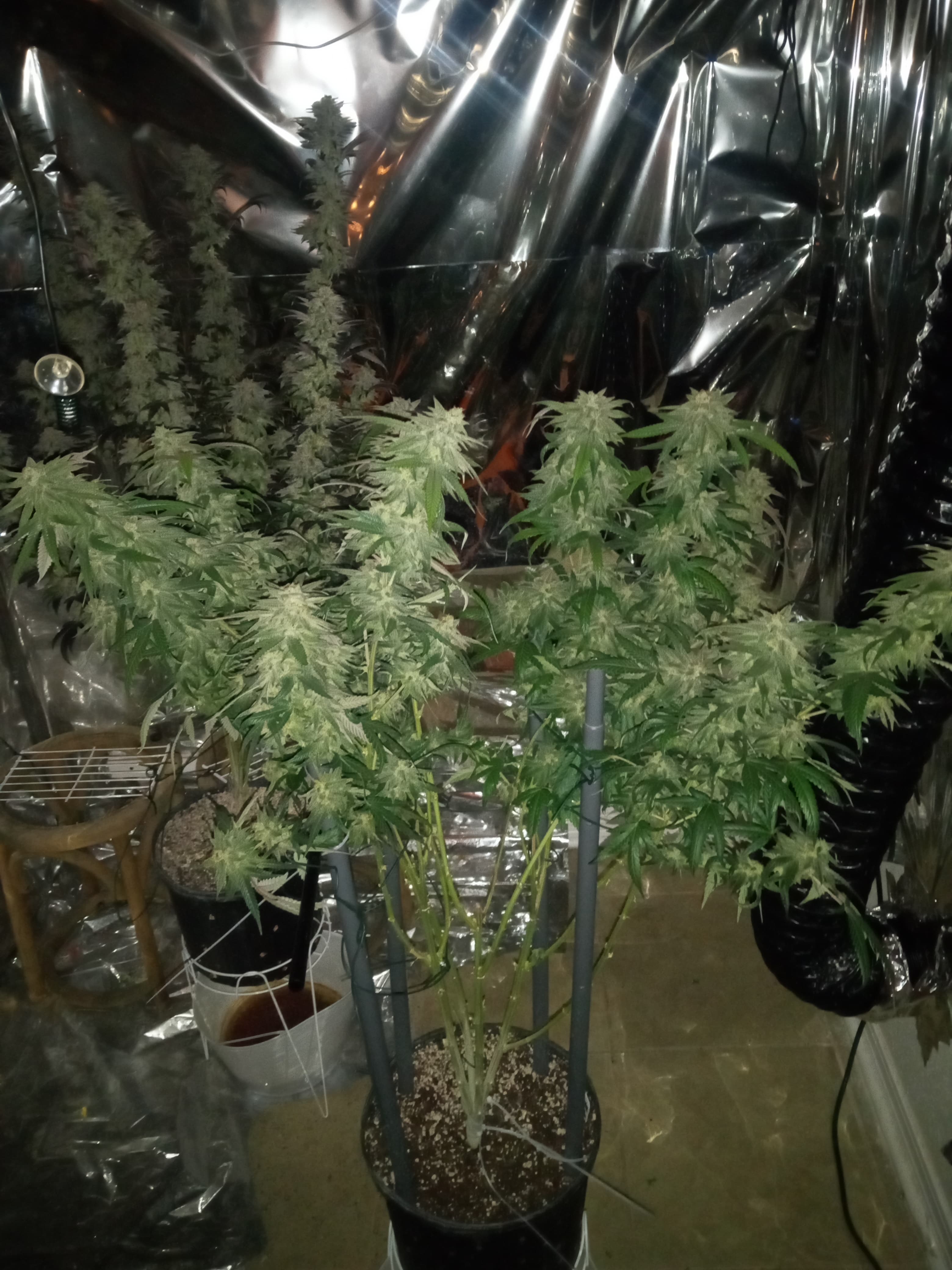 Heres the OG Kush on the left and jelly donutz on the right. Og is week 8 of flower, buds are like skeletons but might be bulking some, kinda late in the game to gain as much weight as I want but it is what it is, hopefully theres no seeds in theee. Well jelly is week 5 of flower and like 4 times the weight of og.