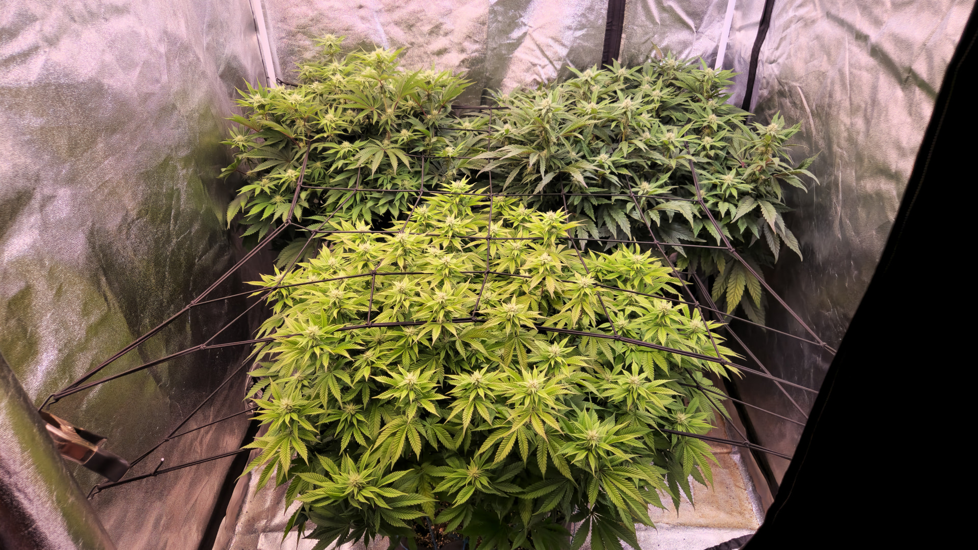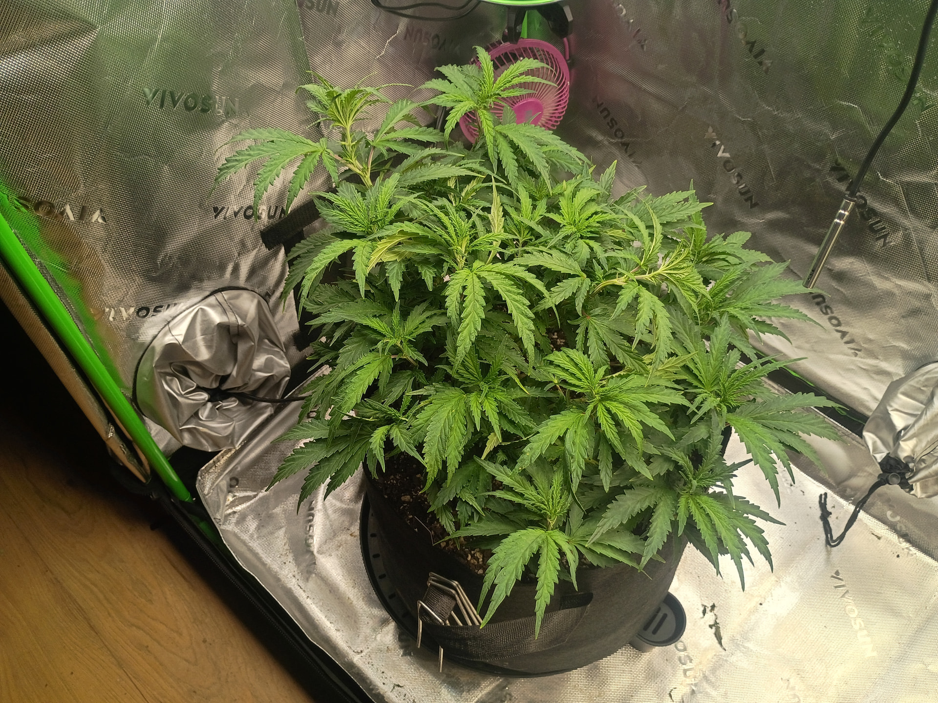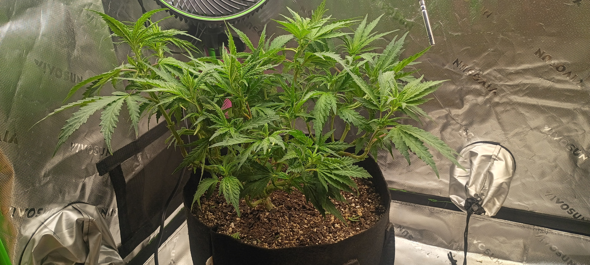 She’s in a 2x4 tent with a Wedding Cake auto that’s close to harvest