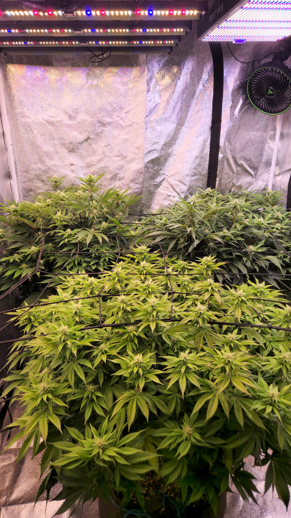 Thanks, but honestly she kind of did that to herself. Shes been a very strange girl in all cycles so far. Goes from aomost being chopped down to this beast of plant I have today. I believe she has almost over taken my Ayahuasca Purple in size too. Shes going to have some fat, sugary colas on her if she keeps going like she is.