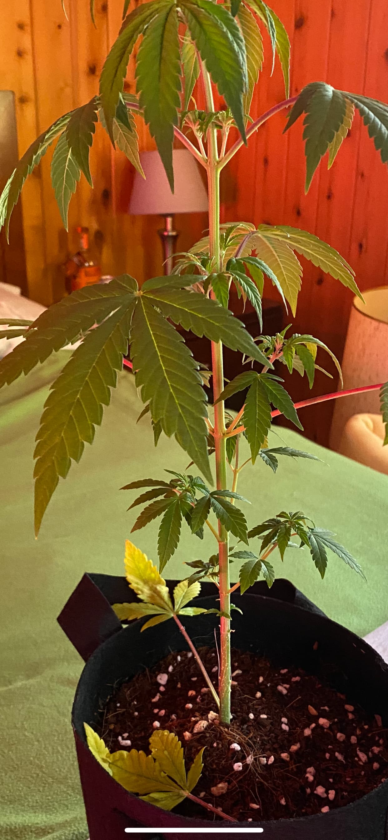 I just joined two weeks ago as a first time grower of auto-flower. I posted a couple pictures of my plant at 3-4 weeks old. She’s beautiful however the next day I noticed two fan leafs are turning yellow and now two more fan leafs turned yellow. From the bottom. I took them off so it doesn’t harm the other leafs. If anyone can help me save her! She was doing so well. Happened overnight. I’m doing everything I should. Also it’s from a pot for pot.