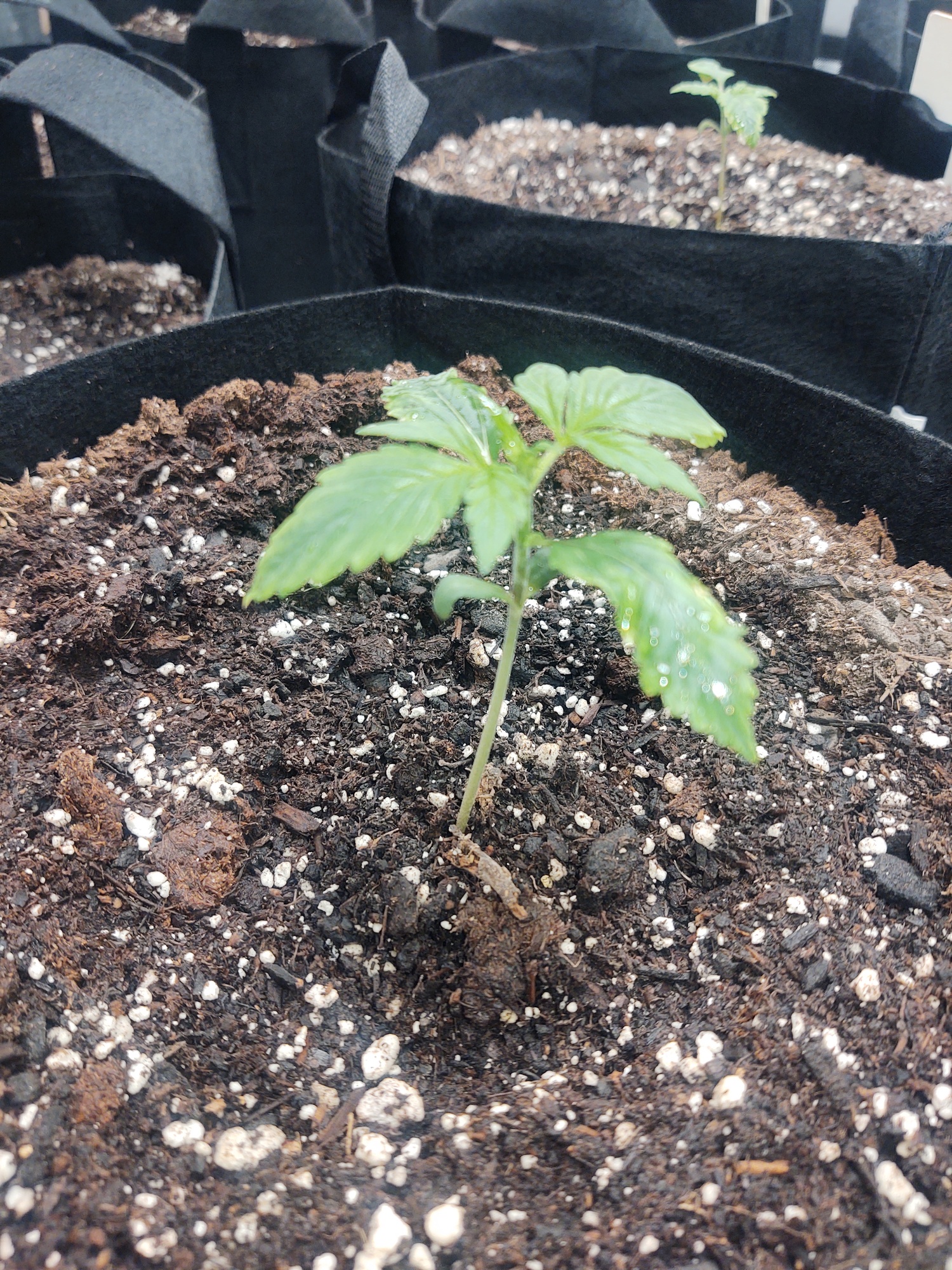 fingers crossed with this one. Day 10. Was accidentally unpotted when I was switching plants to different tents. It was on the ground when I tripped over its pot and it flew out. Surprised to not see any roots. Re planted deeper and just hoping for the best. Happened 16 hours ago and no wilt so we will see.