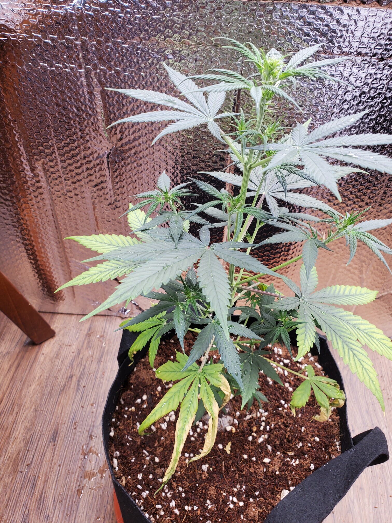 A pot for pot is water only. It’s a living soil coco mix. Don’t let anyone tell you water only is a myth. they obviously don’t understand the concept of a living soil. Which what mother nature is. Don’t have to feed outside plants. I’d say from the pictures she’s too far from the light and needs more frequent watering. Just don’t create a lot of runoff with a living soil. will kill it.