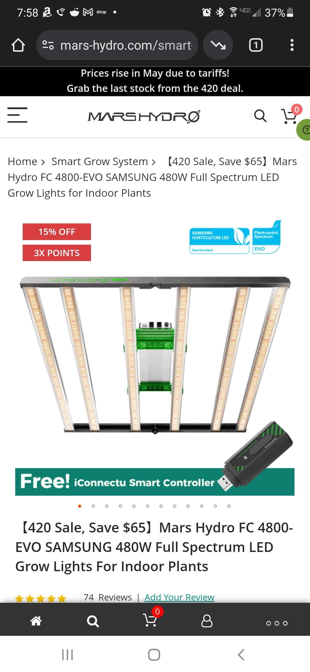 I appreciate it! I actually took advantage of the 4/20 specials and ended up with two 4×2×6.5 spider farmer tents and a mars hydro 4x4x6.5, 6 inch inline ventilation, fans, ect. I upgraded the lights and added the u30,red 30, blue30 bars.