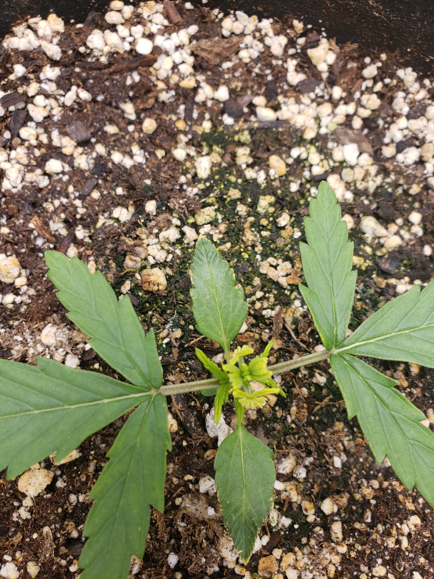 So after doing the topping and giving her some nutrients it looks like it might have burned it a little bit so I will probably be watering with no nutrients and maybe just a little bit of molasses mixed into the water on the next feeding. Also it looks like the spot that I cut her there’s now leaves coming out of it is that normal?