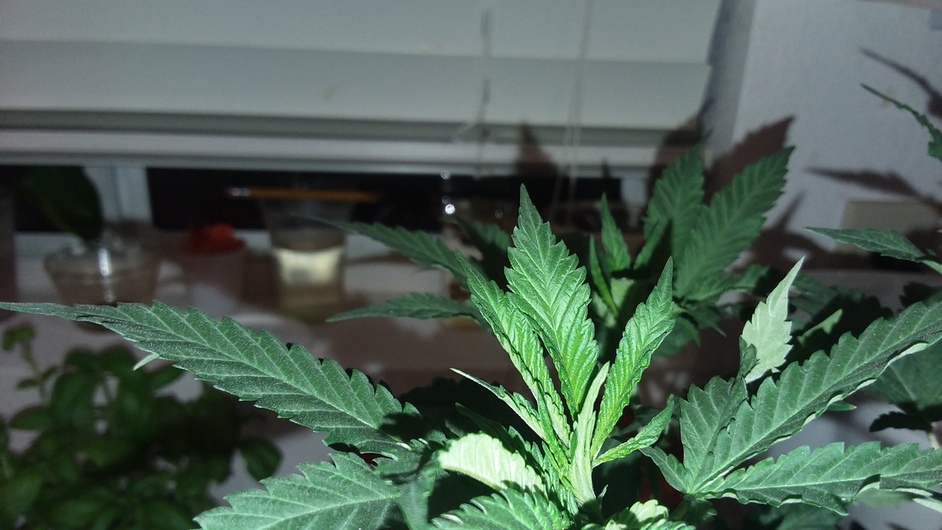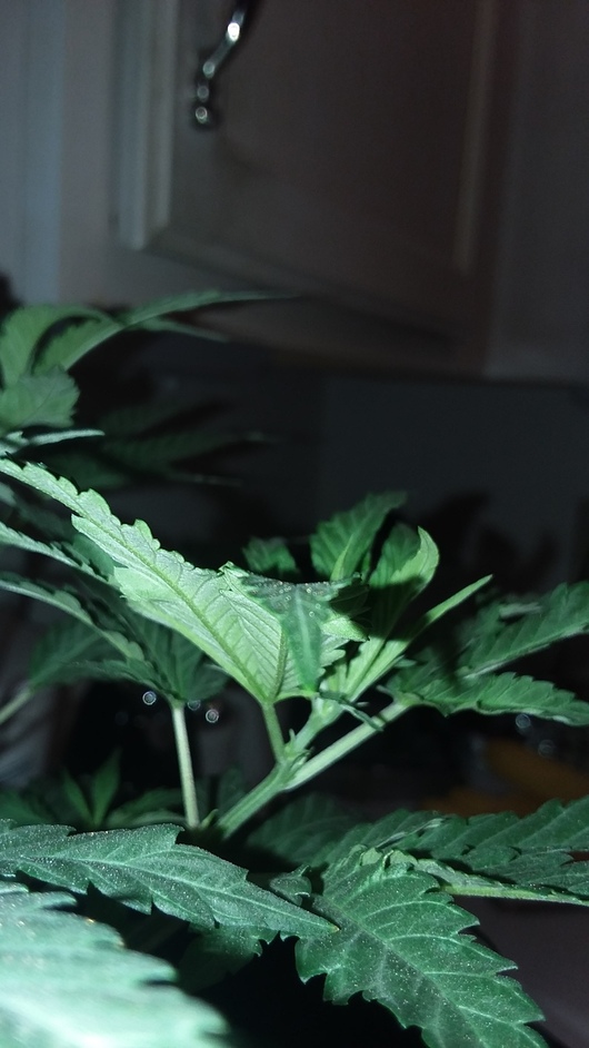 hello all hope all are well. this is my first serious …(by that i mean to actualy grow to compleation.)grow, i have 6 green crack plant in soil, 1 is a mom that we use for clones, she is about 1.5 ft . 1 i topped… which it the problem child,she had 7 nodes b4 i clipped the top on her, and the rest are left to mn to grow. have 1000w mh 18/6 cycle about 24 inches above the plants. i try to keep them at 45-60% humitity and 88 though the temp has crept up to 90 but i usualy try to keep vigilent on temps n such. …im about to move the light down a bit…but i can keep sensitive skin above them (the plants) no prob. water every 3days and feed with nutes every 2 weeks(18-10-18 1/2 sol.).they are in 3 gal pots. they all were growing well… until i topped the one. she took it well…she has 6 nice …um stems? to form a flower, she repaired the gaping lol hole in her top. shes vegging and i think shes vegging excellently. but now shes starting to listen to chubby checker n doin da twist…and im the one thats gettin twisted. arugh…lol. when i water i use tap water, and i let it sit overnight hoping to evaporate any chlorline n stuff. the ph is at 6.5 for the water and nutes both (im kinda broke for now and been giving them my tomato plant food,). the soil…and im not too sure on how accurate it is but i stick the probe in n it says that the soil is a pH of 6.0-6.5. i have looked at her with a light n a microscope and saw no tiny spots…they arent discolored and when i touch them they are nice n firm not chrunchy or anything. but they look like i ironed them flat over each other… im besides my self here i just dont know what to do…i try to keep it methodical but nothing i try seems to help what do you guys think… please help thank you happy gardining my brothers n sisters. peace