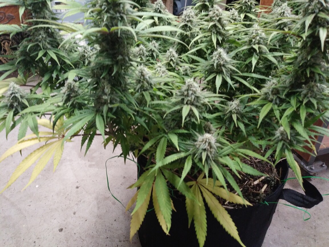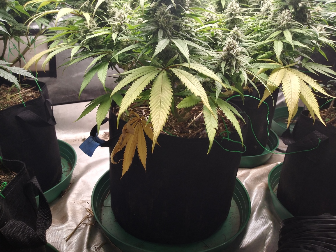 Hey all im in need of a little diagnostic help this morning. My Candy Kush plant from ILGM is really getting yellower than im comfortable with. It just started week 6 of flower and i realise its starting to consume the fan leaves and thats a good thing.the buds are still producing new growth well. The pic of the small plant next to it is a clone of it and its color is way better than mother is. Everything else in the room has no issues at all. Im just wondering if this is a trait of this plant or do i have other issues. Any help is preciated