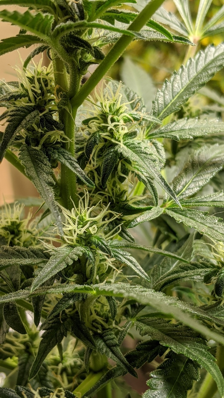 So an update. I harvested the girls and they are drying right now. They aren’t top shelf… But it’s a successful run finally! I still have the one plant that doesn’t know what to do… I took it outside and in 3 days it seemed to start to do get back to where it’s supposed to be. I now have a new run going that’s the same breed as the other. GIRL SCOUT COOKIES AUTO FLOWERS. However I have learned so much more since then! Ph I believe was the main issue. Not ph-ing my water after nutes were added. Ty @Nicky for the help! The run off is something I’ve been working on getting up and I think it’s help tremendously! I do have a new question… Why are the tips of these pistols slightly dark and not all white? Take a look!