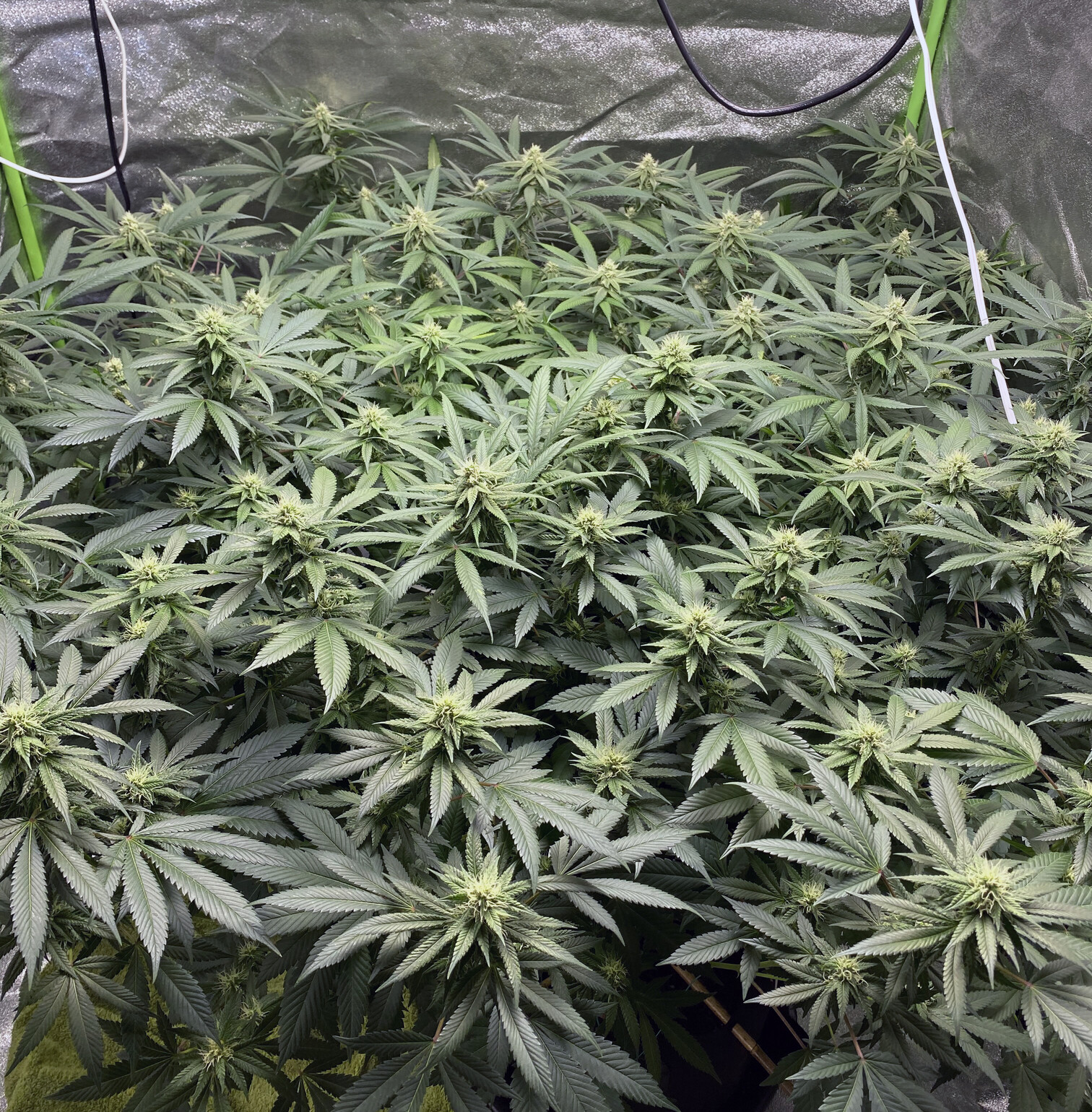 And start of bloom ( I just kept tying down anything that grew above the canopy to keep it even and kept the undergrowth up high for air flow since it was so crowded in my tent: