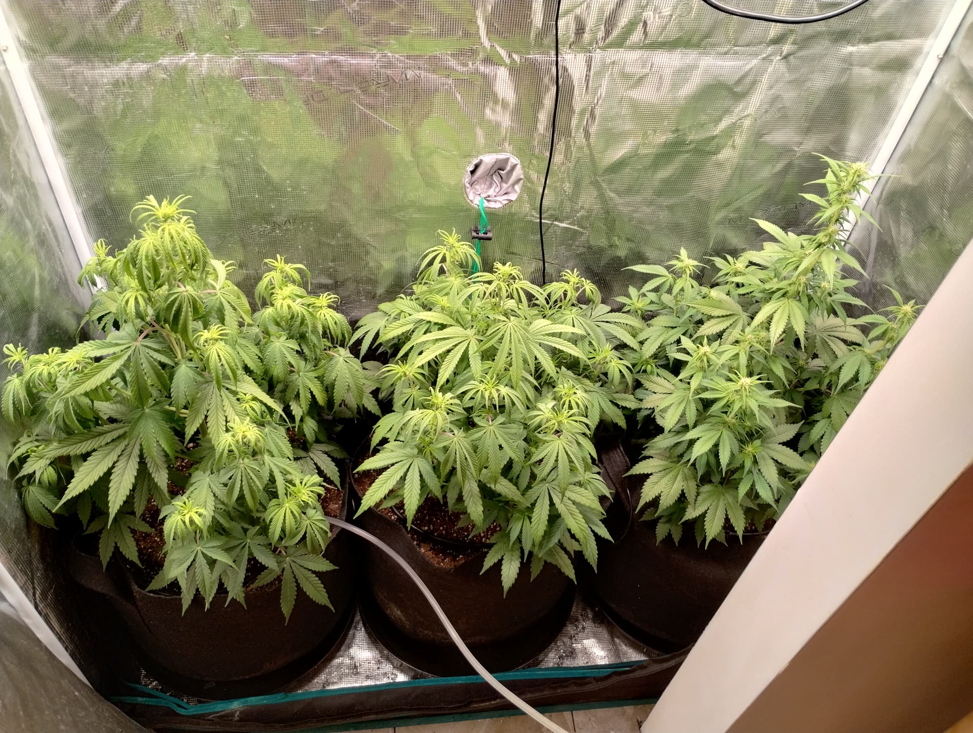 I did not feed yesterday and the one on the left showing a little droopiness this weekend I will do a couple of big leaf trim And I’m going to try a weird scrog technique.