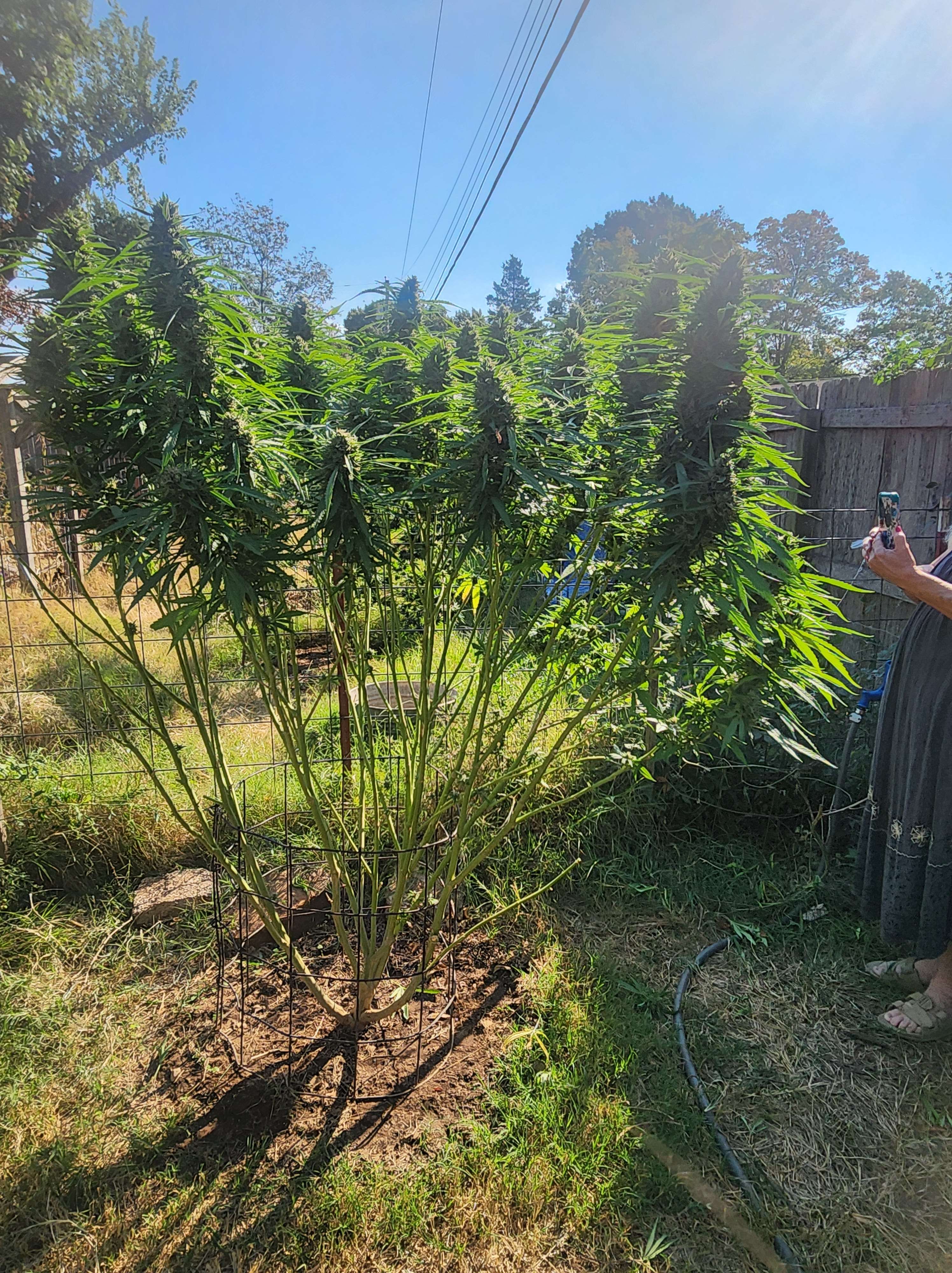 I top my outdoor plants once above the 5 node and again about 3 nodes above that. They get nice and bushy that way. Even though I top twice…they still get pretty tall. Last year I grew in 45-gallon pots and they were over 13 feet tall. This year I am sticking to small pots…large plants are a pain