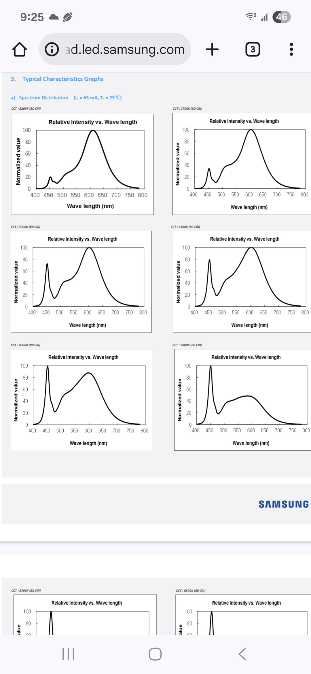 With a high ppfd average i wouldn’t expect you to see a lot of difference in a controlled grow. Light A is probably using something like 3000k cct with 660nm supplemental and light B is probably 5000k cct with 660nm supplemental. See example of the “white” cct’s from Samsung below.