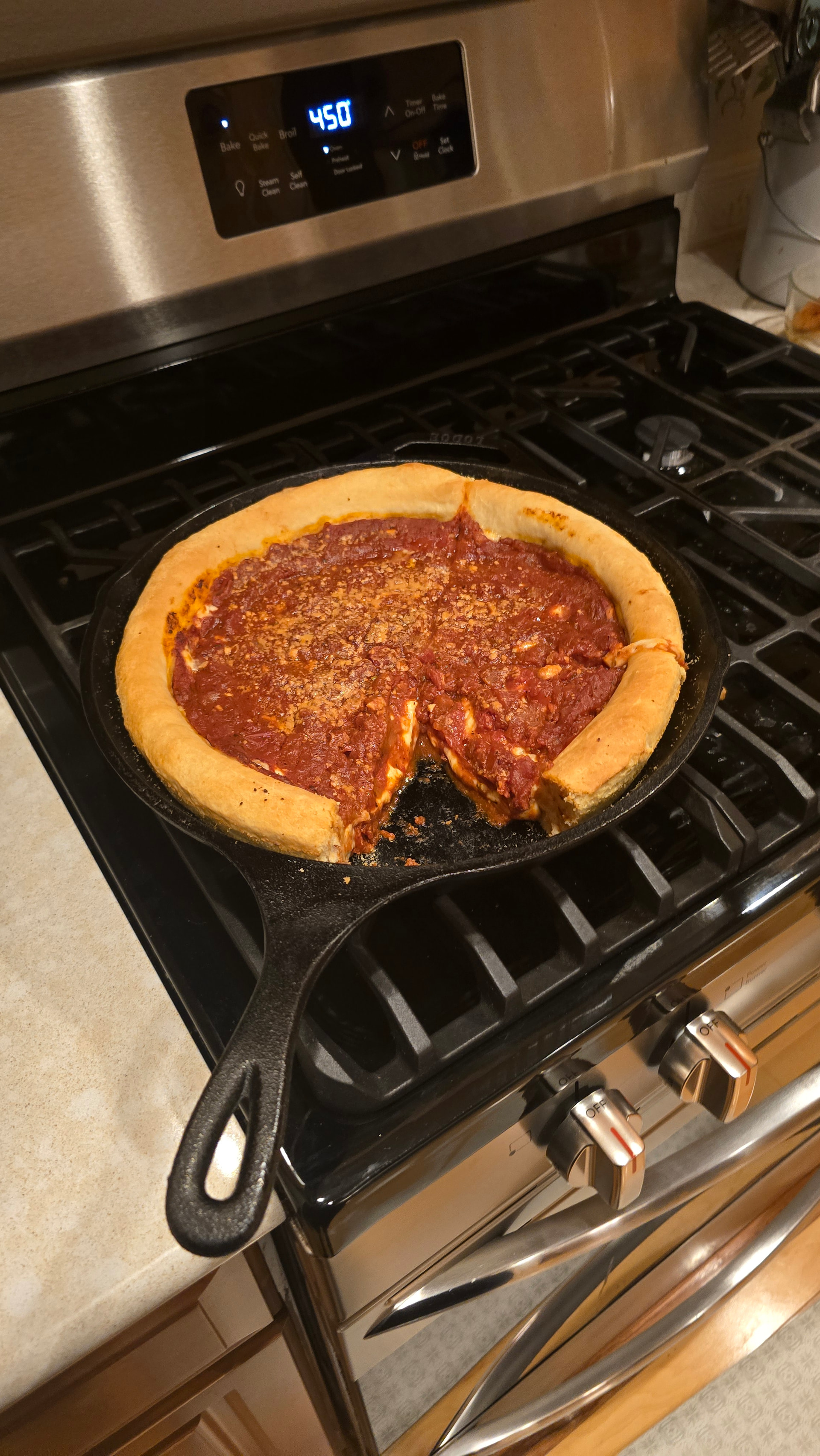 That’s an awesome pizza. Looks like a stuffed pizza. Bravo. Enjoy buddy!