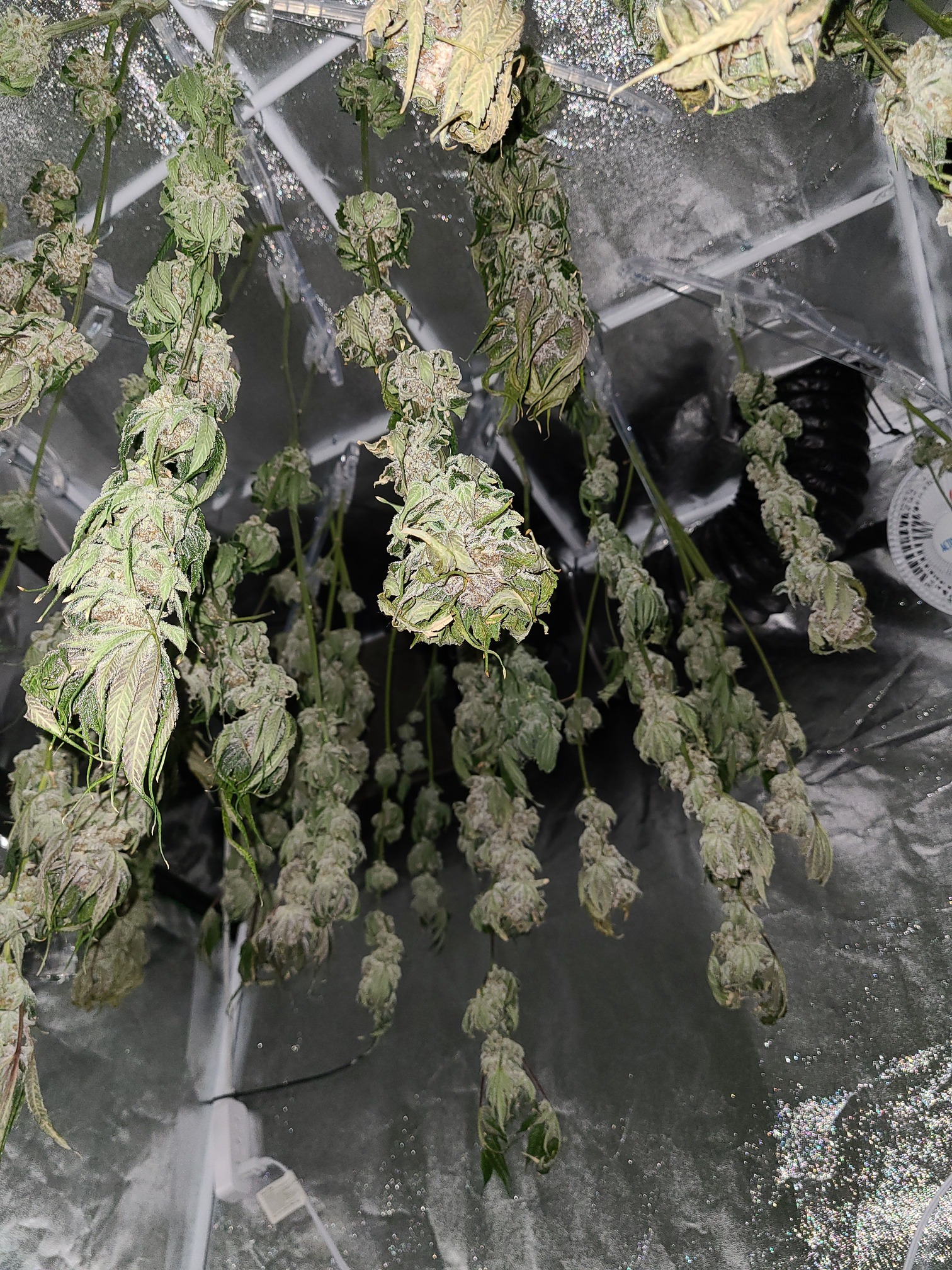 The girls got the chop on day 67. I was running out of room in the veg tent and needed this tent to dry and wanted to stretch it at least a week for drying so down they came. Ill try and get some videos up but the mimosa and dolato look super frosty and the banana had about a week to go but all nice and dense.