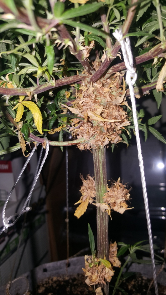 This is my revegged plant. From seed. Gg#4. Has not been topped or anything. Just watered and fed. Eventually more branches start growing out of the buds.