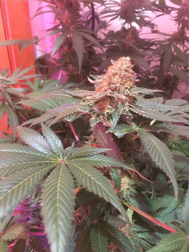 just checked the plants after lights out, in natural light, with my microscope. Gorilla Glue at 100% cloudy, no amber. Amnesia Haze 10% cloudy. Jack Herer 100% cloudy. Gold Leaf 100% clear. Mega Jackpot 100% clear. Liberty Haze 10% amber. White Queen 100% clear. Pineapple Chunk 5% amber. LSD 100% clear. I am now 84 days from seedlings breaking the ground. No real training done on them cuz there are too many to go bushy this grow. ILGM Amnesia Haze is definitely the most sturdy of all, and taller than the rest, and her monster crop clones are also outperforming the others.