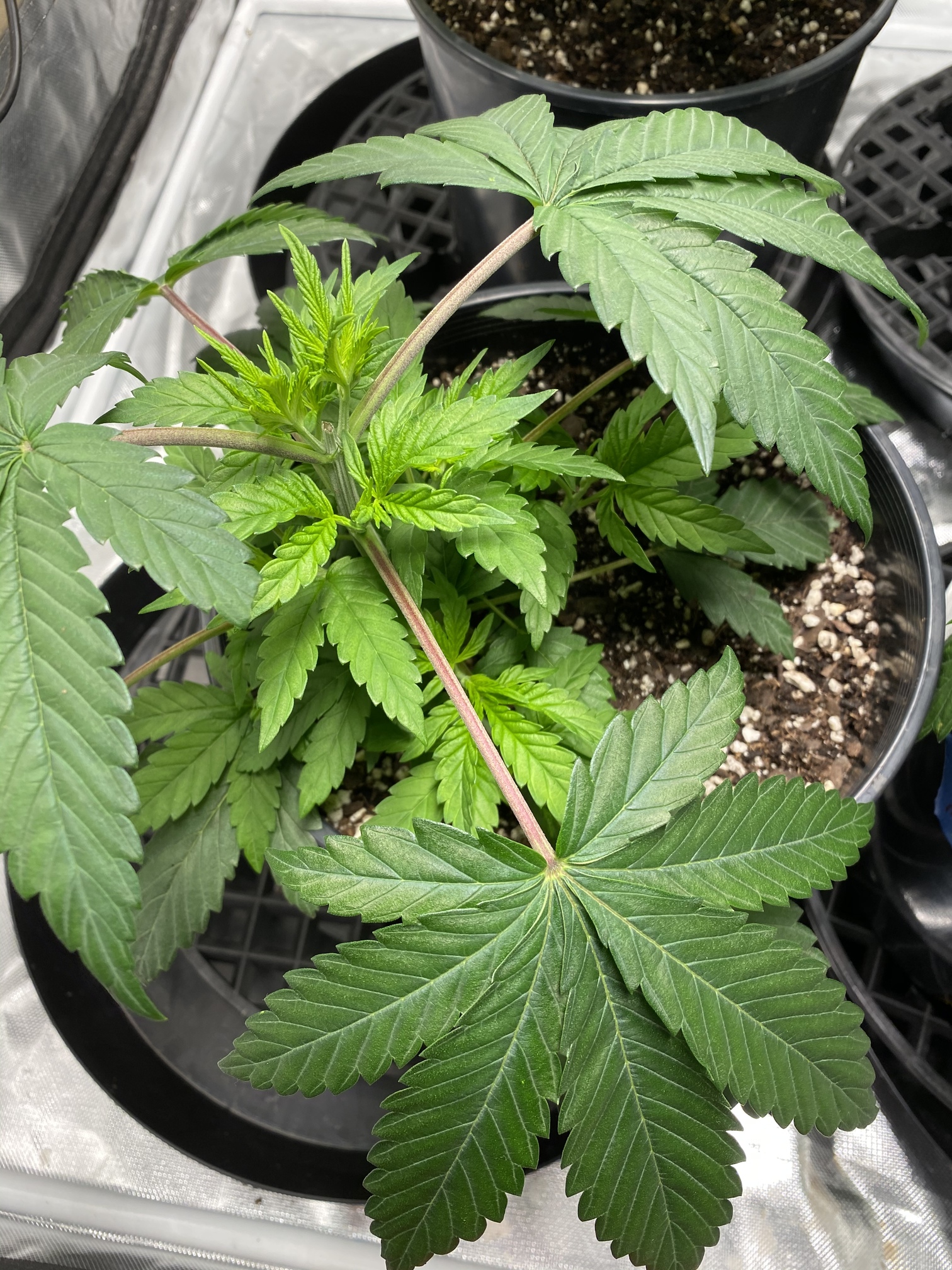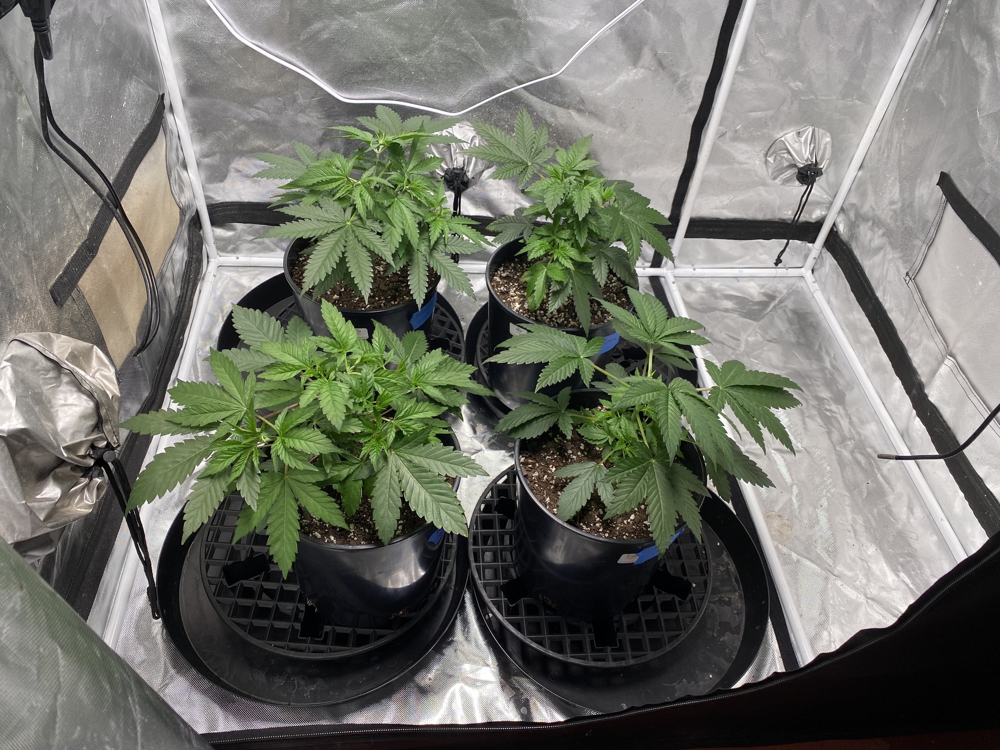 Lights come on in a few hours, if the pots seem pretty dry I’ll try to transplant into the 7 gal fabric pots tonight!