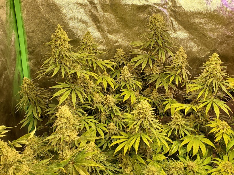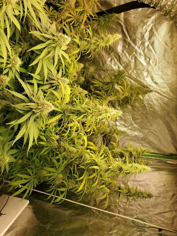 Day 45 of flowering. The largest Purple haze is huge. I have purple kush and grandaddy purple. Strawberry cough and the fat one is chocolalope!