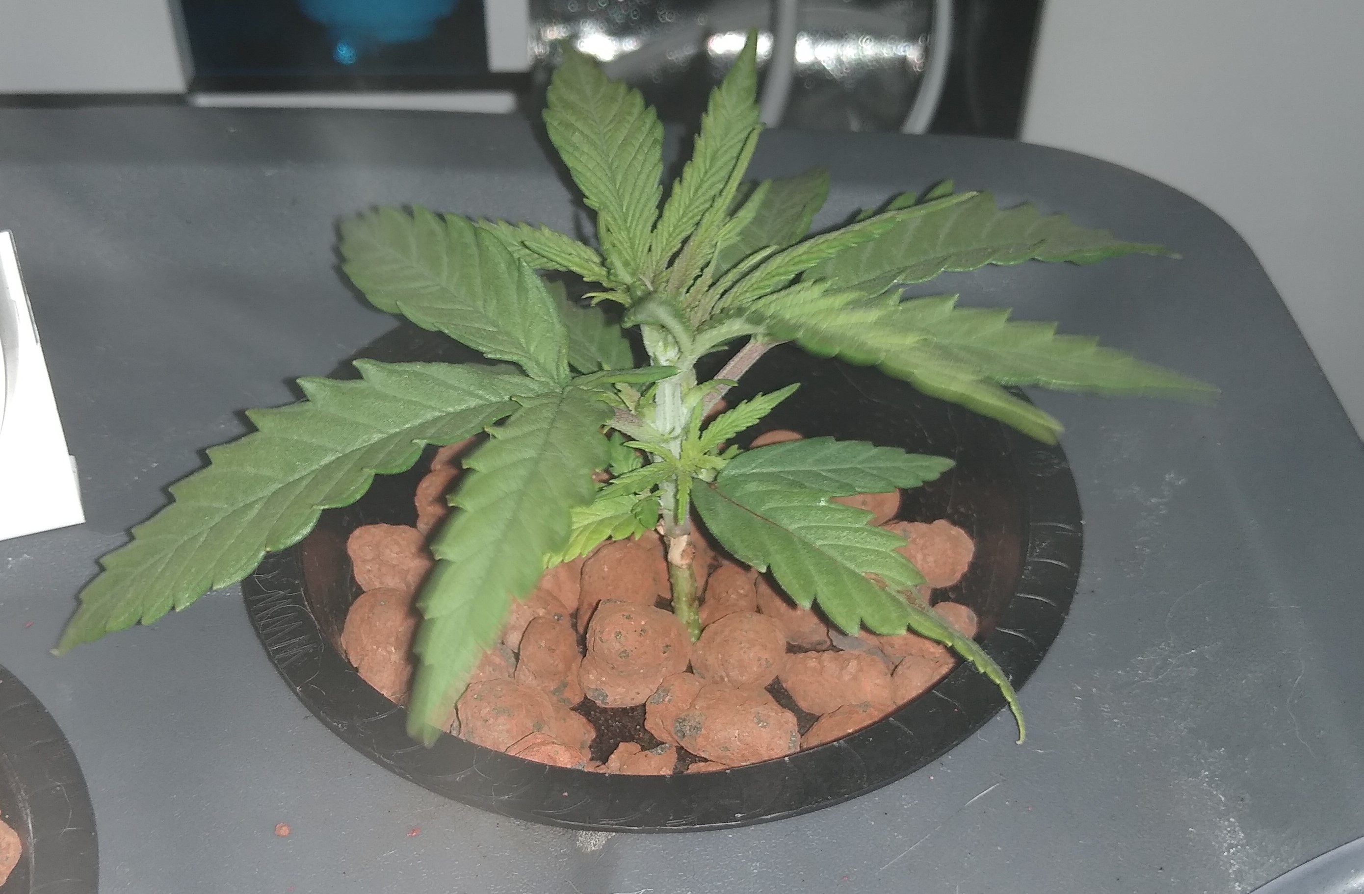 Entry 10: Tomorrow will be 2 weeks since I dropped the seed which is now a very healthy looking seedling. I ended up adding a second humidifier to the chamber which has helped a lot. It seems like one of those humidifiers works per 600W LED light. Since I added the second one, I’ve been fighting humidity. Now I have been able to stabilize it and things are looking better.