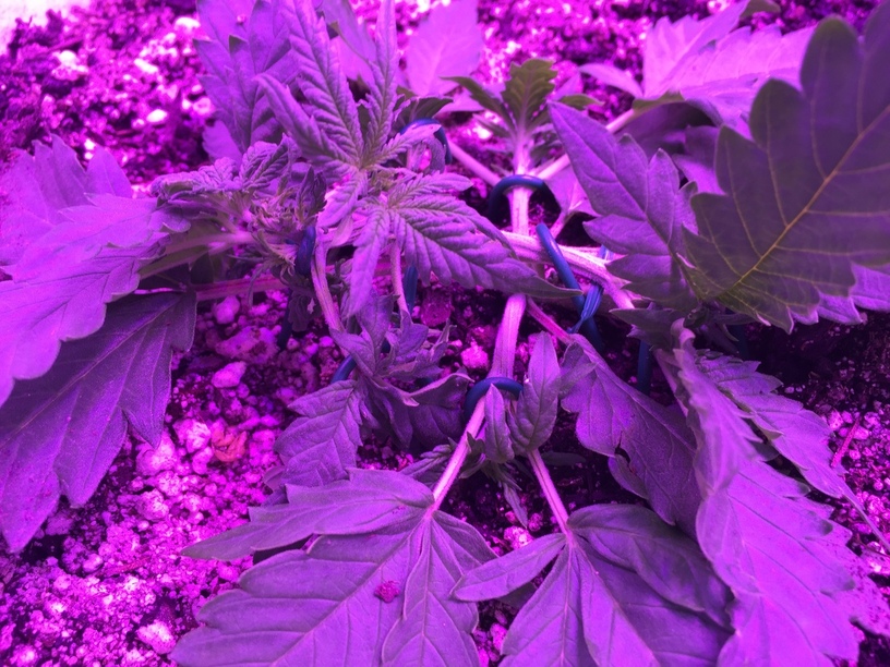 So I ended up with 2 good shoots that I’ve already got pinned down for horizontal growth, 1 that is off doing its own thing on the side, and the middle shoot looks like it’s growing 2 or 3 little offshoots. Not to mention the offshoots from below the main branch in 4 directions! This one is gonna fill the bucket FAST!