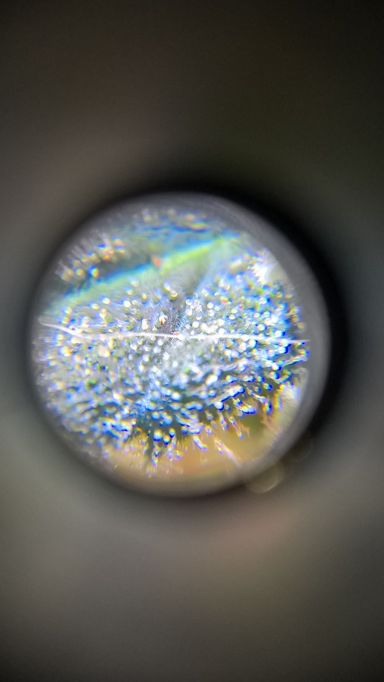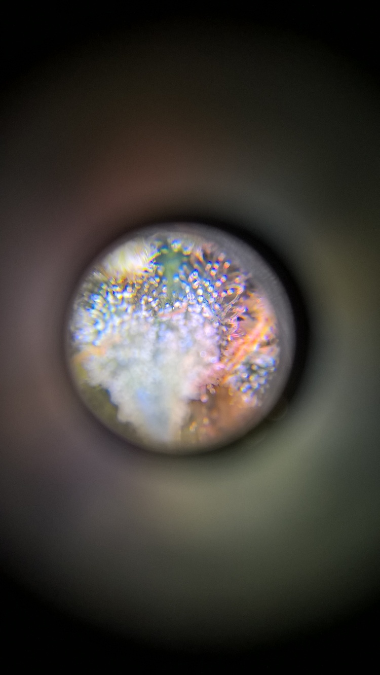 I tried the magnifying glass and then doubled the glass and still pic wasn’t clear. I got the 60x louve from e-bay for like $3 and bam I could clearly see the smallest details of the plants. I understand that the Trichome coloring is critical to a timely harvest and top end product. this louve attaches to the camera lens of your phone as well. Best “O” luck with your grow.