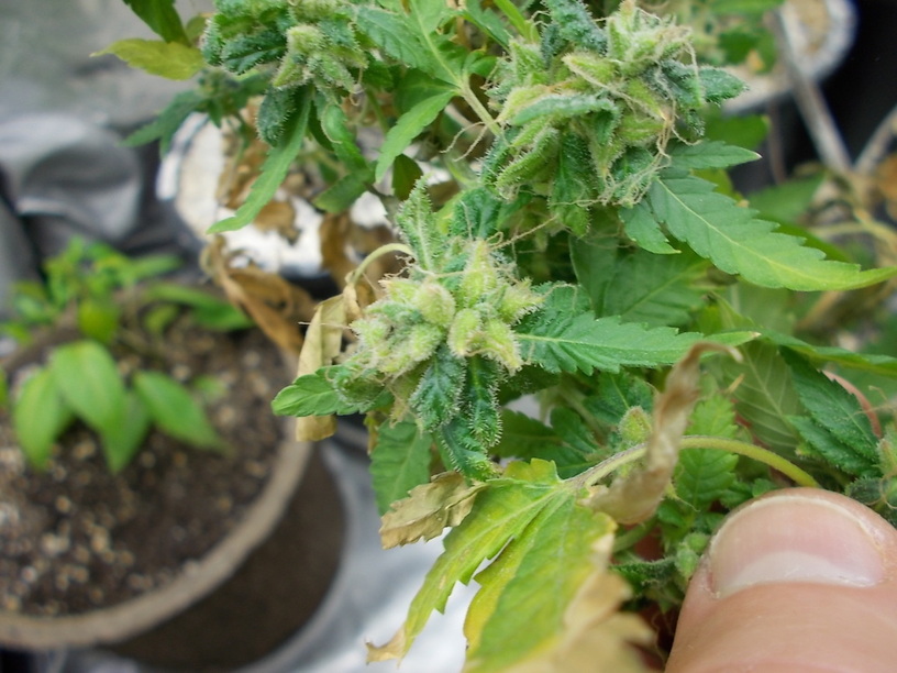 My super skunk project is still alive, I believe it has been a month since I posted, and I guess I need to picture it to show the progress. I am very sure I should have seeds, I guess seeding is important cause I would like to vacuum pack and freeze some seeds. I did get back some plants from a neighbor, their leftovers and they had difficulties with due to their inability to deal with spider mites, surprisingly they set them out on their back porch open to the fall cold air and rain and the plants survived, I have them now all dusted with diatometrius earth tilll I figure out what to do,…I have a small stunted white widow that needs attention with nutrients and growing more to repair, and I think the two overgrown ones are super skunk, enough plants of the two to start a new small grow from cuttings it looks like, I wished I had labeled the pots when I gave a bunch away. What is disturbing is my white widow seeds I have left are pretty much about to turn two years ago, I wished I had known about freezing, and I have about six, and I think freezing right now might be too late. Anyway, here are update photos of the super skunk I am trying to seed by rhodelization, or however it is spelled, by allowing it to flower longer than normal.