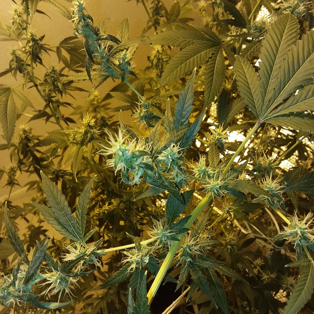 hey all hope all re doing well. i suddenly realised that my strong sugar leaves are now wilted. they arent crispy and the soil is moist but not wet. they are green crack clones in flower for just under 2 mts. they were growing like wild fire and all of a sudden they started to wilt. also ever time i water them wether it be with food or not they would droop like they need water then 4 5 hrs latter they would be fine…idk if related or not. im in a room temp is 80/78 and humidity is at 38%. good circulation.