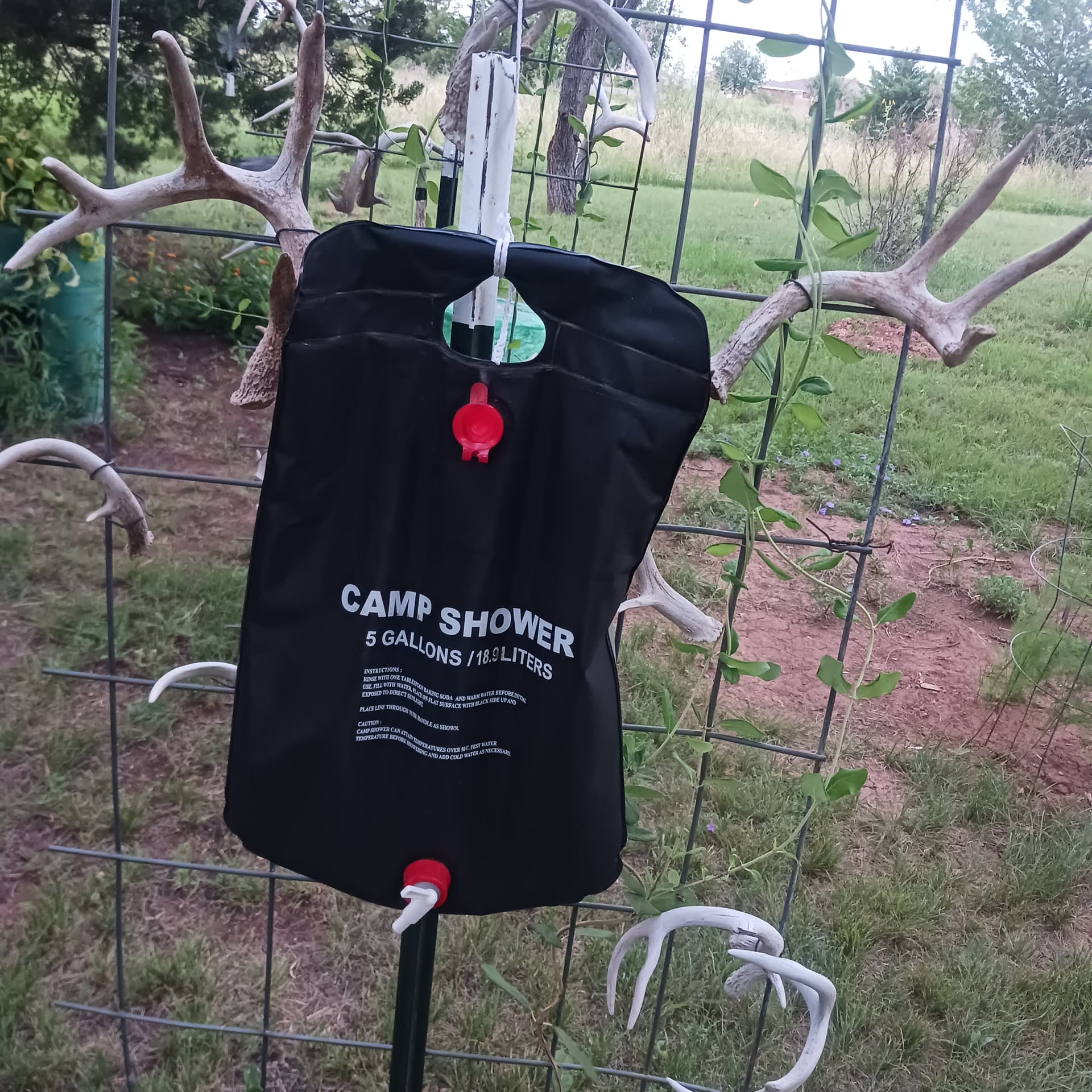 We bought a shower bag, 5 gal. Have had it dripping from trellis watering honeysuckles. The petcock works, no leaks, hanging 5gals would be 40lbs full. You can drip that at any rate. Just an idea.