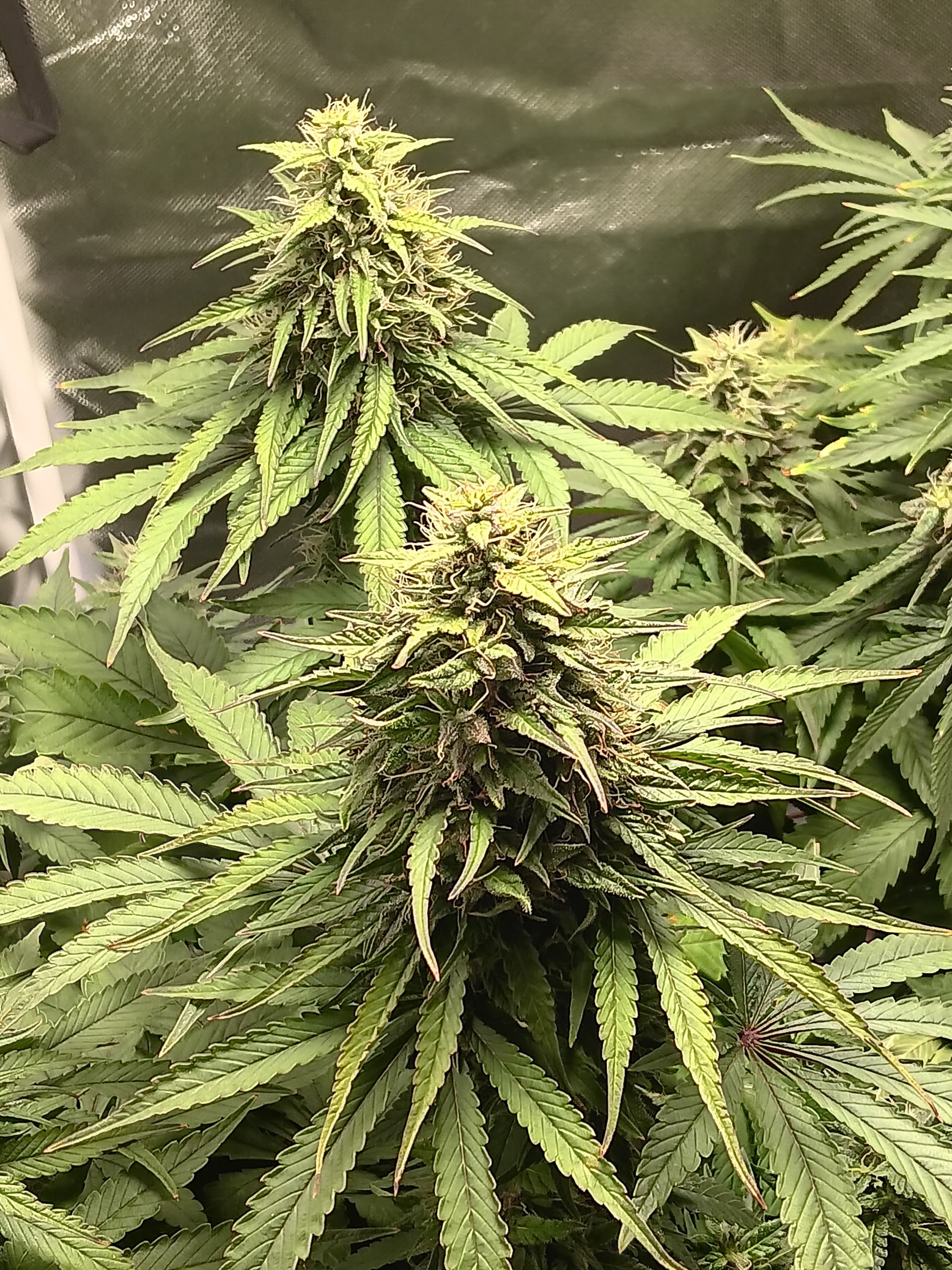 Im curious on how im doing or if theres anything better i can do on my 1st cycle. Shes reciving 18/6 currently and is watered every 3-4 days with 1 gal. Of 6.3-6.8 ph water and recharge every 7-10 days. Using a Mars Hydro tsw2000 light at 50% in a 3x3x6. Strain is super silver haze in a 5 gal cloth pot. Ranging betweek 62-72% RH and 72-82°F