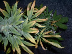 When your plants are deficient in phosphorus, this can overall reduce the size of your plants. Not enough causes slow growth and causes the plant to become weak, to little amount of Phosphorus causes slow growths in leaves that may or may not drop off. The edges all around the leaves or half of the leaves can be brownish and work its way inwards a bit causing the part of the leaves to curl up in the air a bit. Fan leaves will show dark greenish/purplish and yellowish tones along with a dullish blue color to them. Sometimes the stems can be red, along with red petioles that can happen when having a Phosphorus deficiency. This isn’t a sure sure sign of you having one though, but can be a sign. Some strains just show the red petioles and stems from its genes.